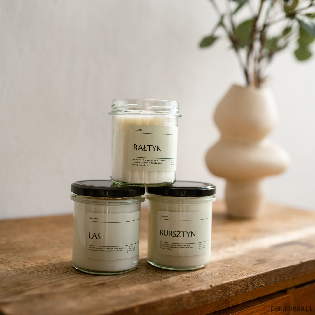 Świeca ręcznie wykonana ze 100% wosku sojowego z dodatkiem wysokiej jakości kompozycji zapachowej. W odróżnieniu od świec parafinowych, świece sojowe nie dymią i nie wydzielają szkodliwych substancji.