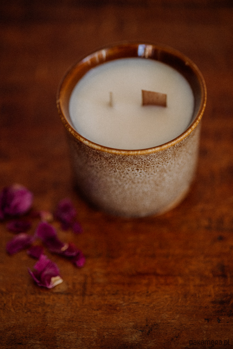 Jest w niej coś, co nas zatrzymuje i uspokaja. Zapachowa świeca sojowa w porcelitowym naczyniu vintage.