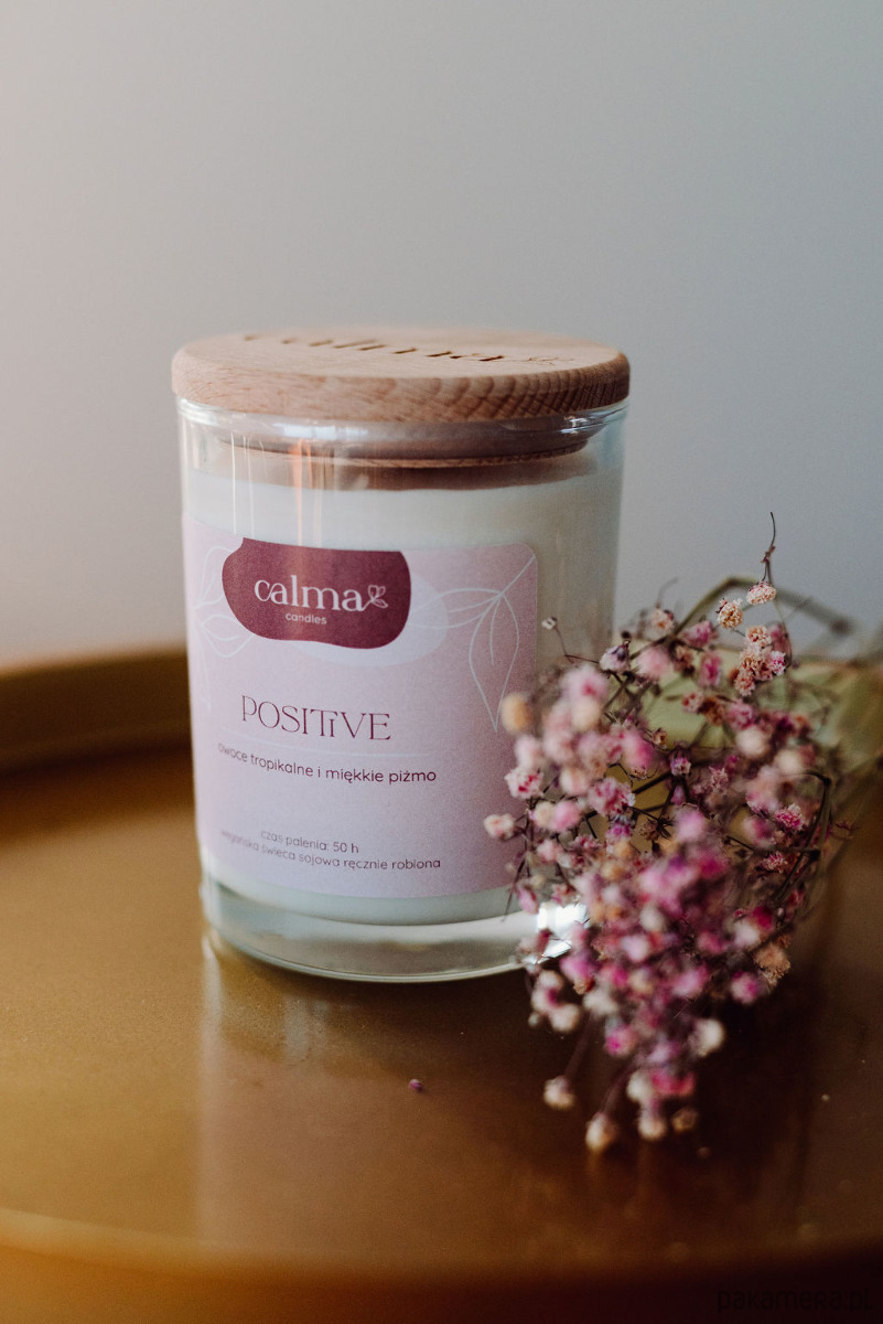 Esencję słodkiego grejpfruta, świeżej bergamotki, kwaśnej pomarańczy wzbogaciłam o miękkie piżmo, które nadaje całej kompozycji wyjątkowy aromat. Nuta Positive to energetyczna porcja orzeźwienia lub jako antidotum na zmęczenie. Całość zamknięta w transparentnym szkle, by widoczny płomień świecy wprowadzał Cię w stan relaksu i odprężenia.