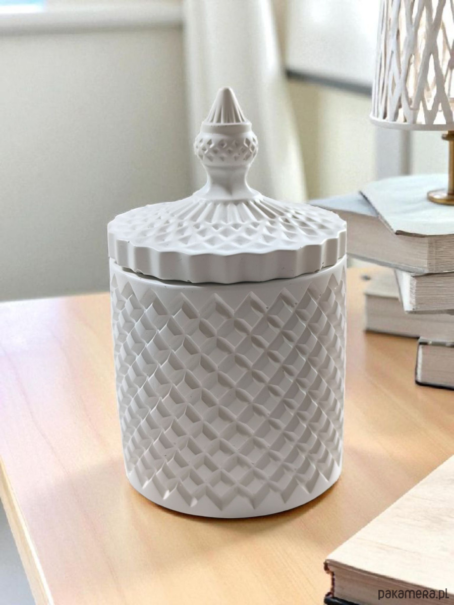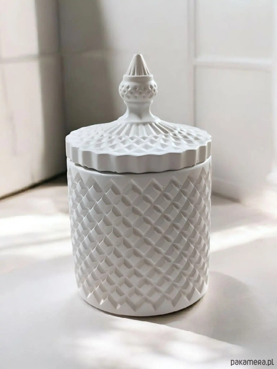 Świeca sojowa w pojemniku gipsowym SIMPLE WHITE, inspirowana la vie est belle