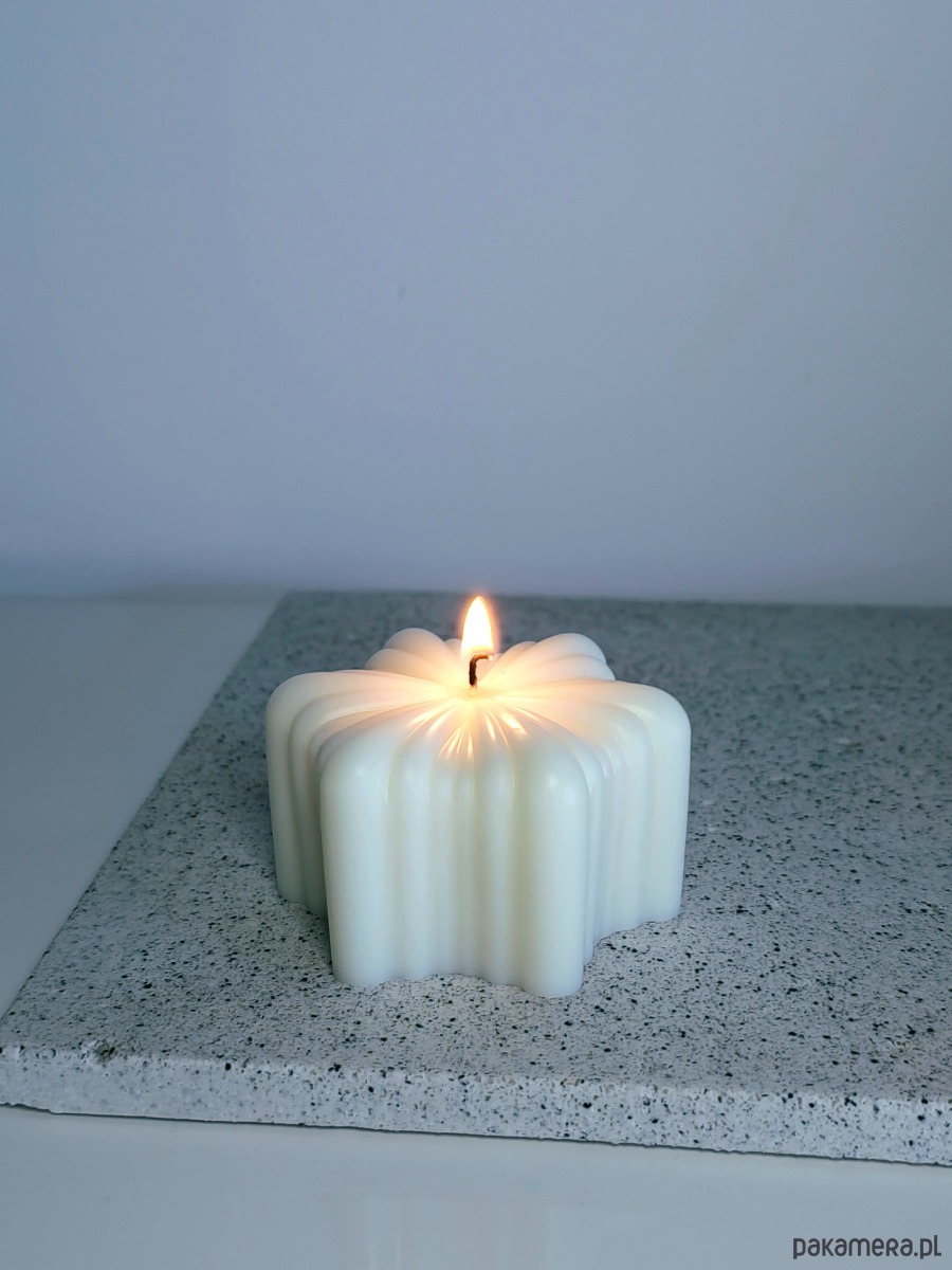 Świeca Śnieżynka to ręcznie wykonana dekoracja z naturalnego wosku sojowego, w kształcie delikatnej, geometrycznej gwiazdki. Wnosi lekkość, elegancję i zimowy klimat do każdego wnętrza. Doskonale sprawdzi się zarówno jako samodzielny element dekoracji, jak i w zestawach prezentowych.