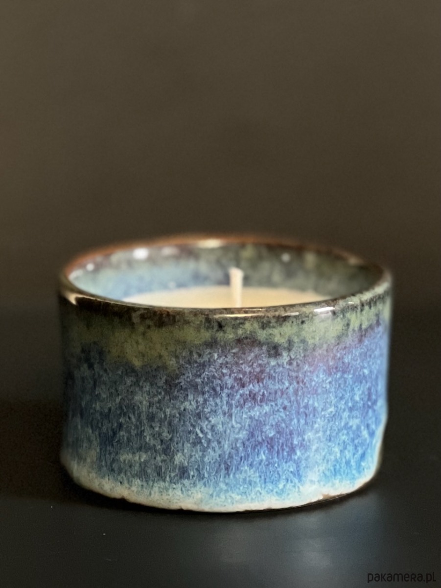 Wosk znajduje się w prostym, oryginalnym, ceramicznym pojemniku, który po wypaleniu świecy możesz wykorzystać jak tylko chcesz (np. kubek, doniczka). Każdy pojemnik jest oryginalny, szkliwa przepływają inaczej, co daje niepowtarzalne efekty kolorystyczne.