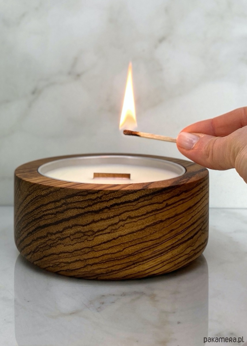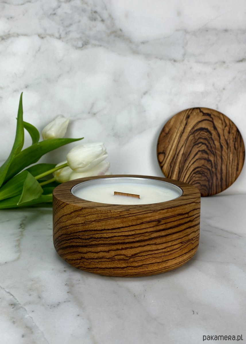 Poznaj jedyną w swoim rodzaju naturalną sojową świecę w drewnie - połączenie ekologicznego wosku sojowego z olejkami zapachowymi zamknięte w szlachetnym, ciepłym drewnie ZEBRANO. To piękny dodatek do wnętrz oraz źródło przytulności dla każdego miłośnika natury i pięknych zapachów. Będzie doskonałym prezentem dla Ciebie lub dla bliskiej Ci osoby!