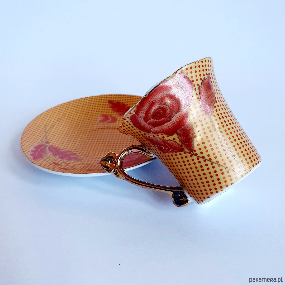 Ja ukrywałam się długo w szafie na strychu, na zakurzonej półce, aż w końcu trafiłam na rynek ponownie, w poszukiwaniu nowego właściciela. Zaopiekowała się mną PEŁNA Pracownia Rękodzieła. Jestem filiżanką z duszą - z giełdy antyków. Otrzymałam właśnie nowe tchnienie. Moje piękno, delikatność, precyzja w wykonaniu i bogate zdobnictwo przyćmiewają urokiem błyszczącą na sklepowych półkach, anonimową, masową porcelanę. Mam w sobie mnóstwo zaklętych historii, przygód, perypetii. Noszę ślady dotyku, bycia w centrum wydarzeń - ktoś mnie kiedyś pokochał, używał.