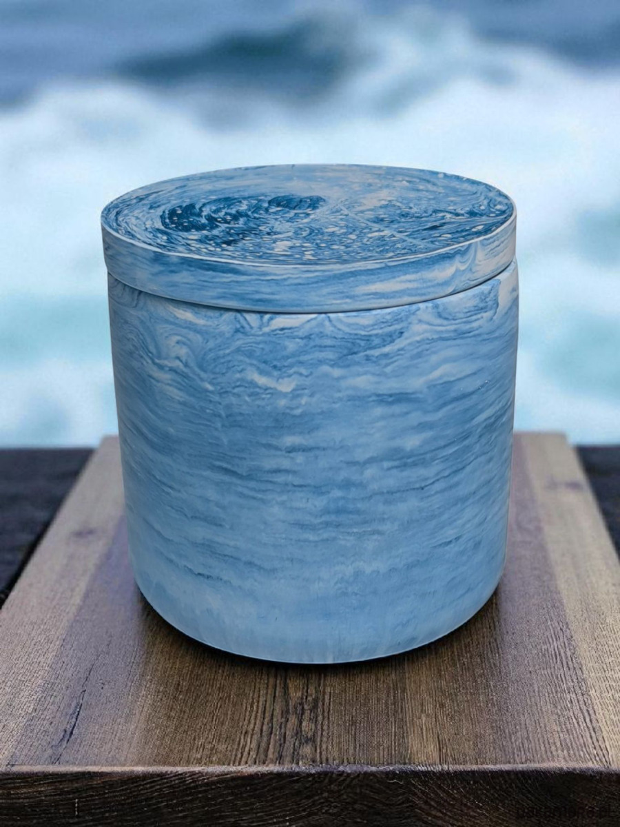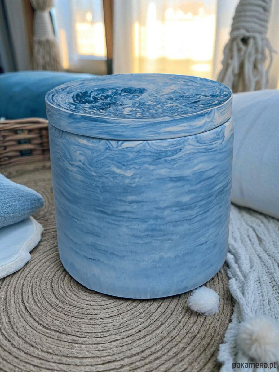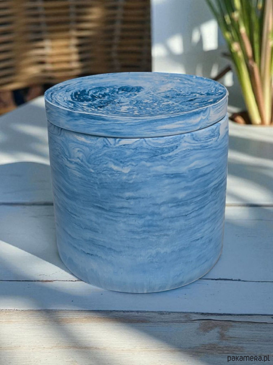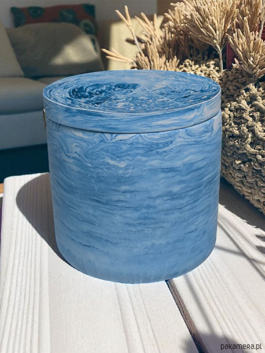 Świeca sojowa w niebieskim naczyniu gipsowym NORDIC CALM sól morska i orchidea