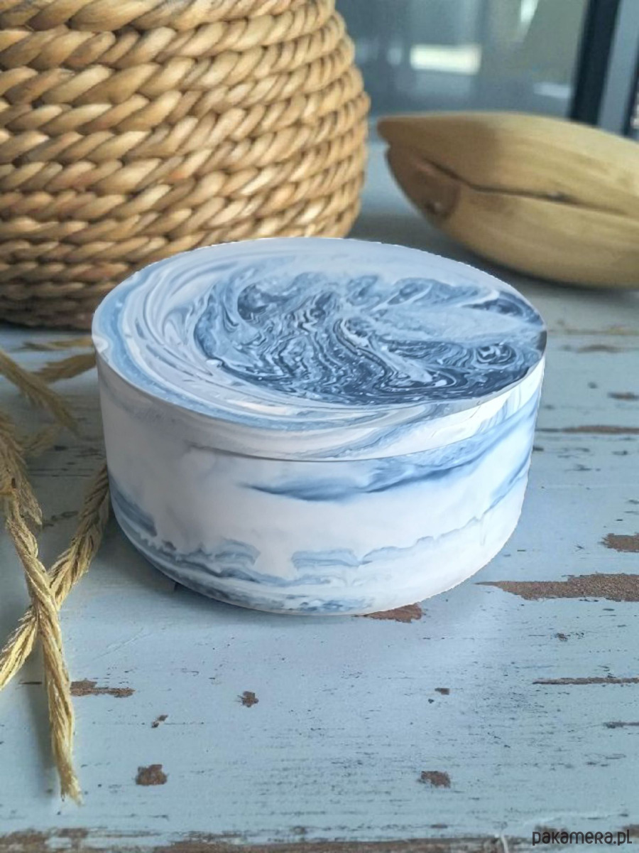 Naczynia, w których zatopiono świece, są wykonywane ręcznie, dlatego każda sztuka różni się wzorem i układem barw. Kolorystyka i marmurkowe przejścia są wynikiem naturalnego procesu łączenia pigmentu z gipsem – niepowtarzalnego jak każda chwila spokoju.