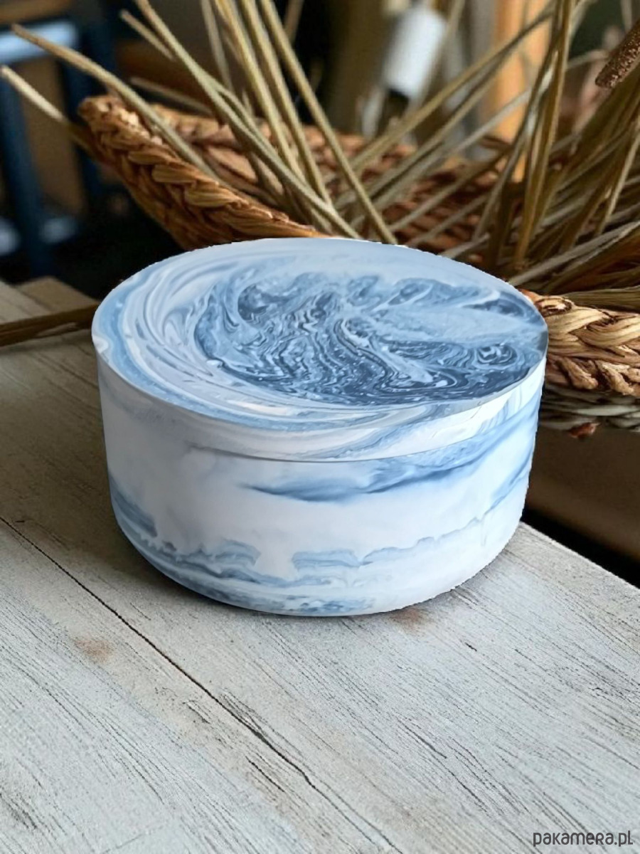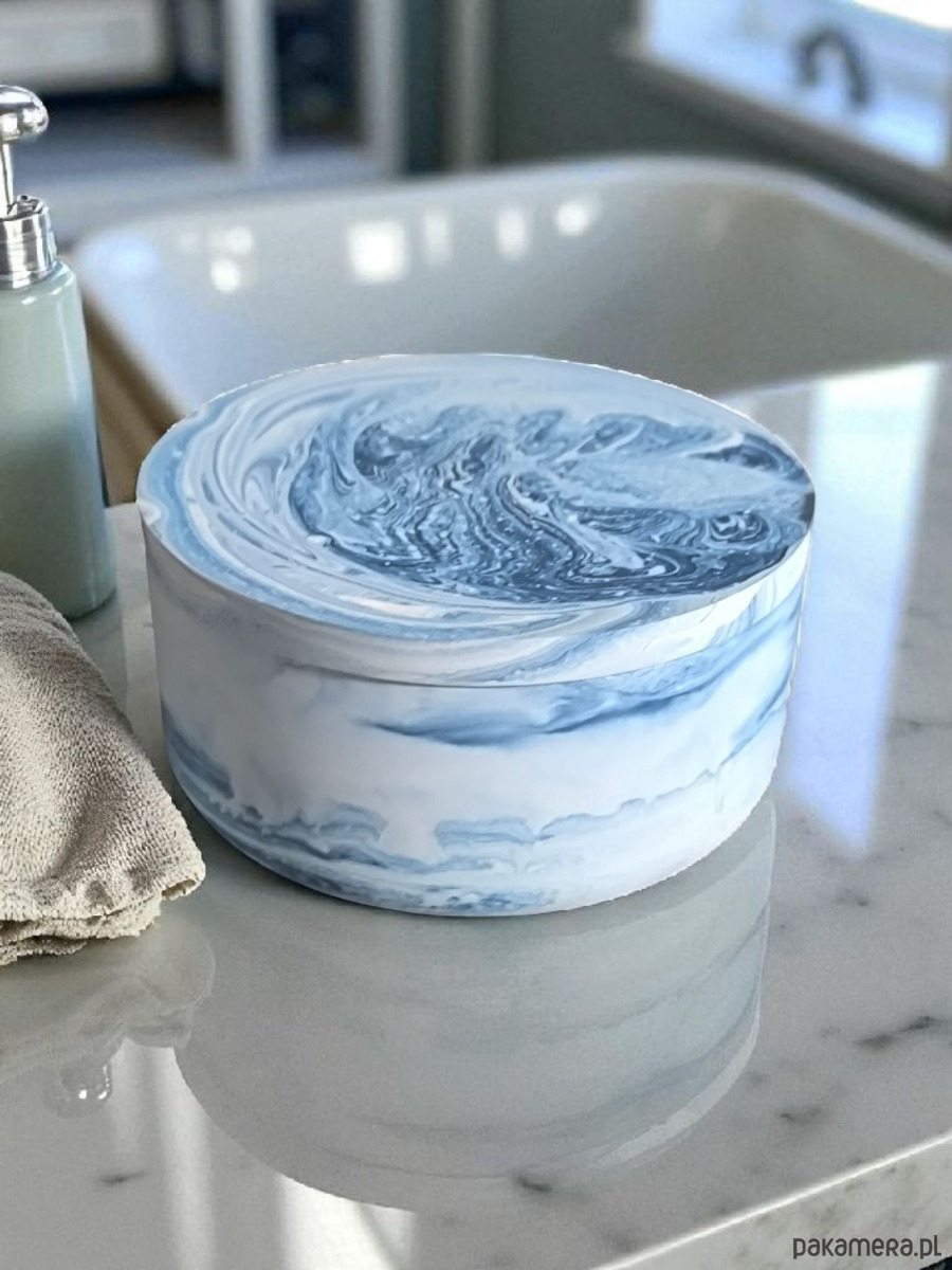 Świeca sojowa w niebieskim naczyniu gipsowym NORDIC CALM sól morska i orchidea