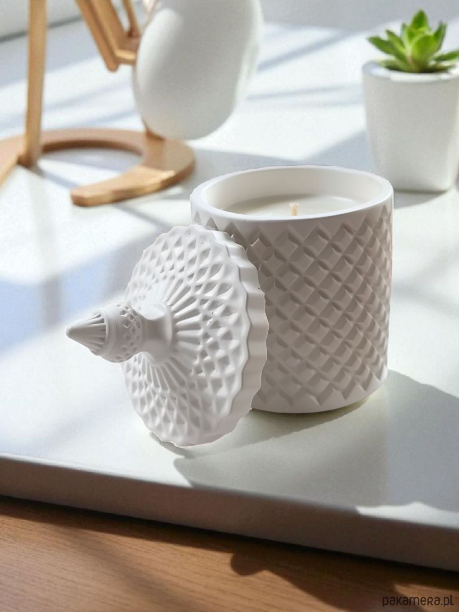 Świeca sojowa w pojemniku gipsowym SIMPLE WHITE, inspirowana la vie est belle