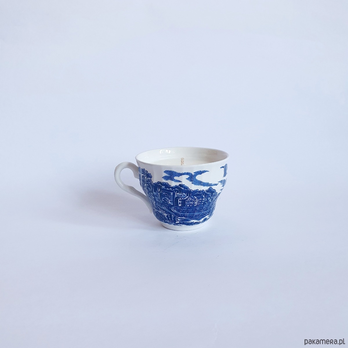 Świeca sojowa w zabytkowej angielskiej filiżance