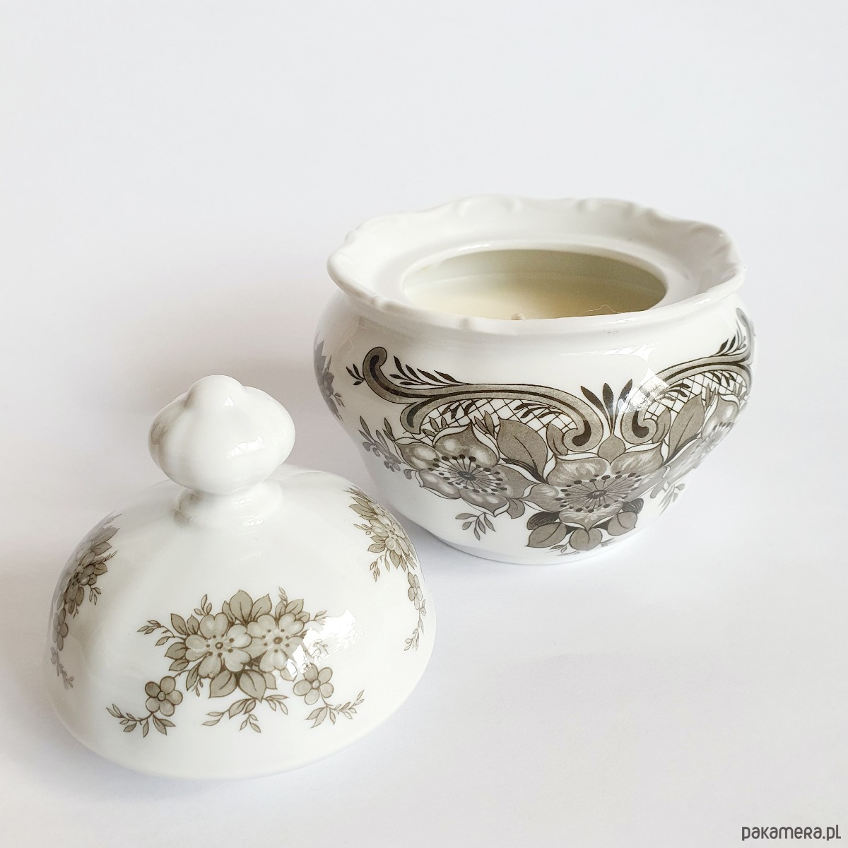 Ja ukrywałam się długo w szafie na strychu, na zakurzonej półce, aż w końcu trafiłam na rynek ponownie, w poszukiwaniu nowego właściciela. Zaopiekowała się mną PEŁNA Pracownia Rękodzieła. Jestem cukiernicą z duszą - z giełdy antyków. Otrzymałam właśnie nowe tchnienie. Moje piękno, delikatność, precyzja w wykonaniu i bogate zdobnictwo przyćmiewają urokiem błyszczącą na sklepowych półkach, anonimową, masową porcelanę. Mam w sobie mnóstwo zaklętych historii, przygód, perypetii. Noszę ślady dotyku, bycia w centrum wydarzeń - ktoś mnie kiedyś pokochał, używał.