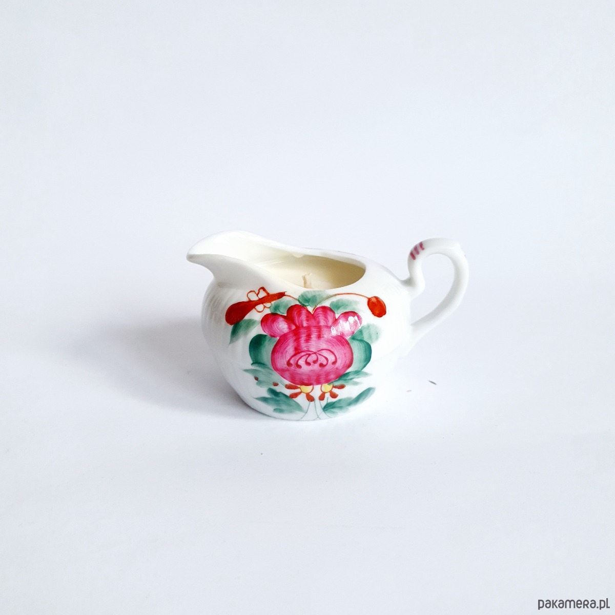 Świeca sojowa w zabytkowym mleczniku - ręcznie malowany