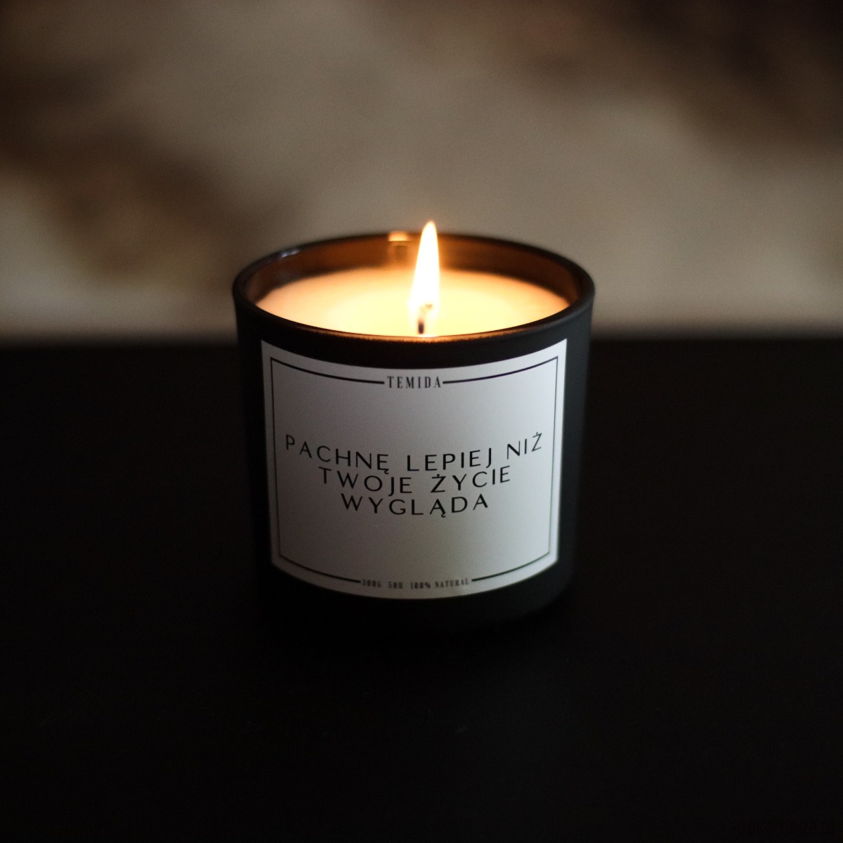 Świeca sojowa zapachowa Pachnę lepiej niż Twoje życie wygląda
