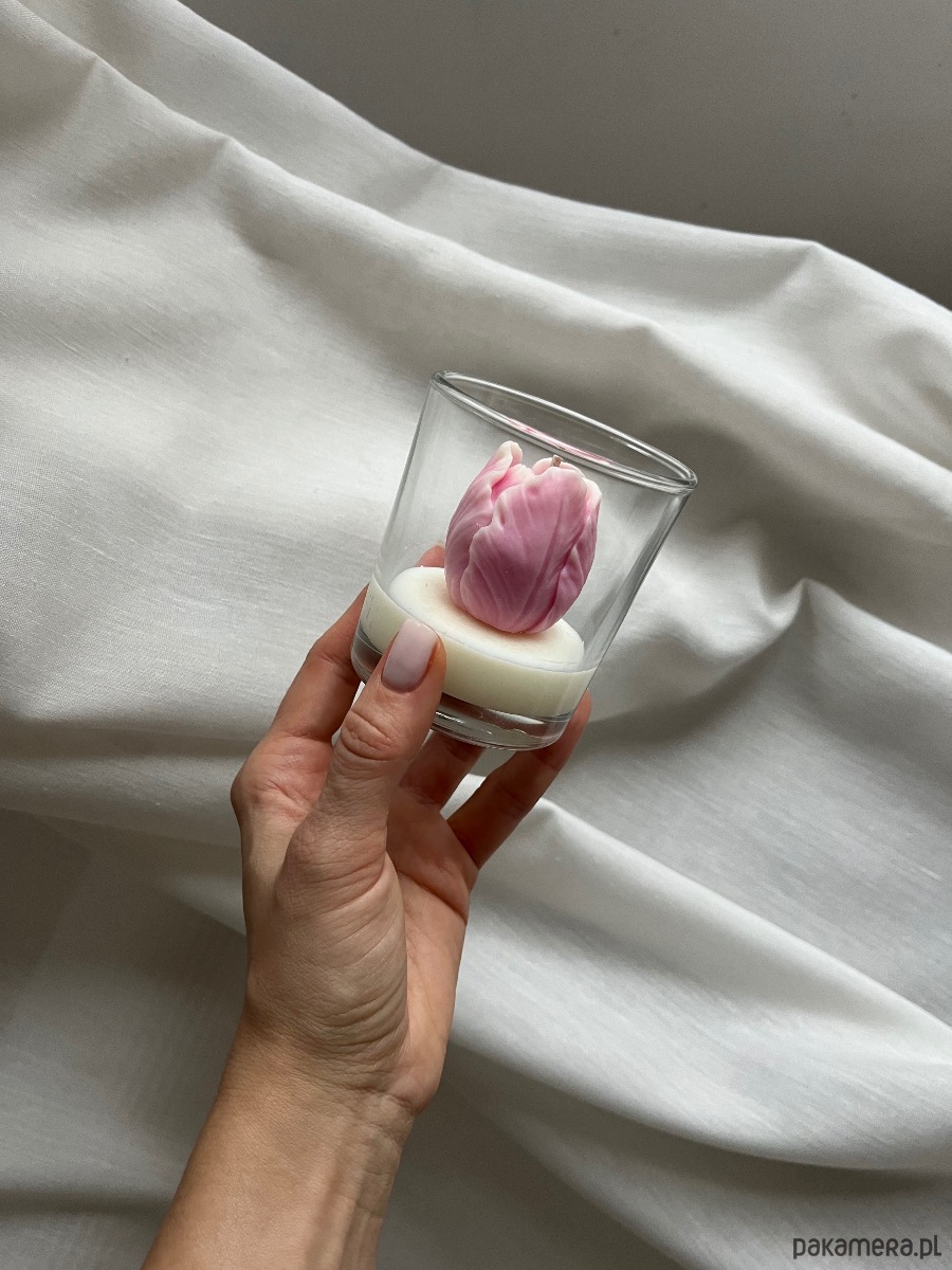 Wyjątkowa świeca, która zachwyci na każdą uroczystość – Dzień Mamy, Babci i Dziadka, Nauczciela, Urodziny, Wesele, czy inne wyjątkowe święta! Kwiatowe piękno zamknięte w szklanym opakowaniu.