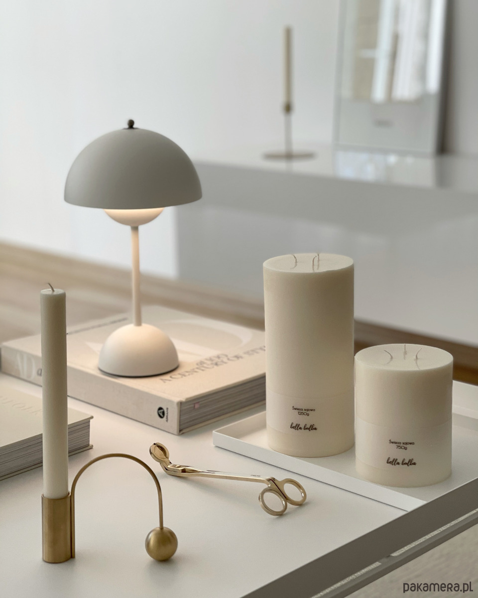Świeca odlana ręcznie w pracowni pod Wrocławiem. Skład: wosk sojowy, knot bawełniany. Wymiary: wysokość 20cm, średnica 9,5cm. Orientacyjny czas palenia: 80 godzin.