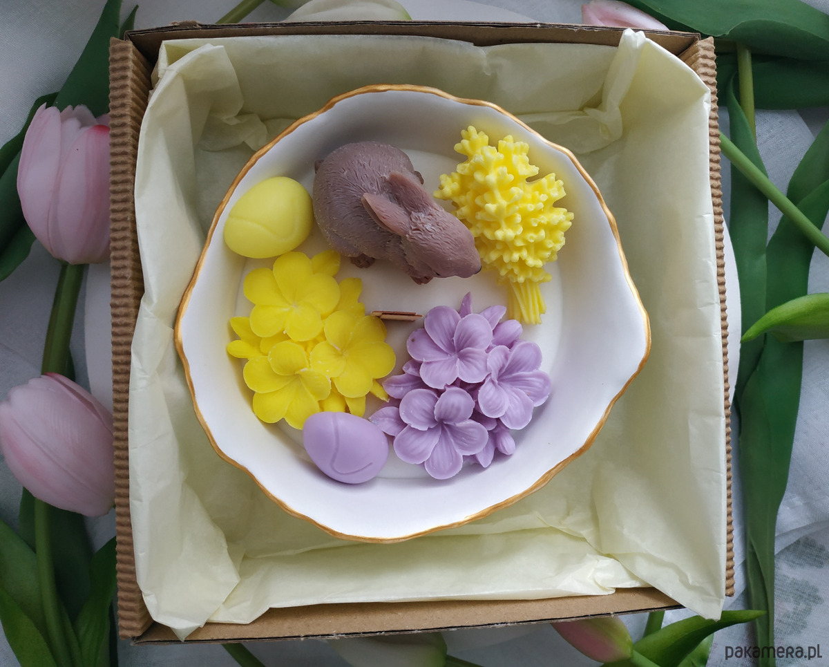 Świeca sojowa w pojemniku z gipsu ceramicznego o zapachu wiosennych kwiatów.