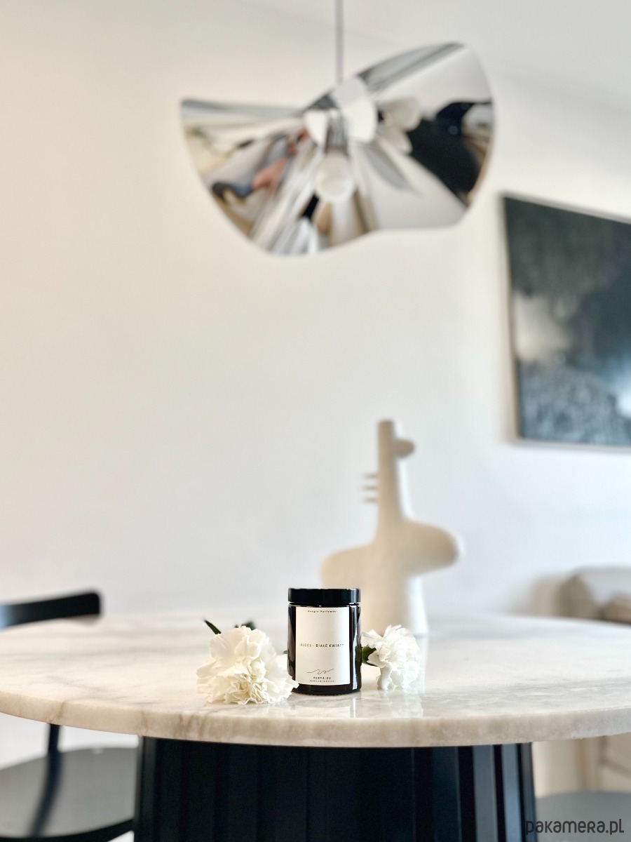 Świeca własnoręcznie zalana w pracowni na warszawskiej Woli woskiem roślinnym z dodatkiem najwyższej jakości olejków zapachowych.