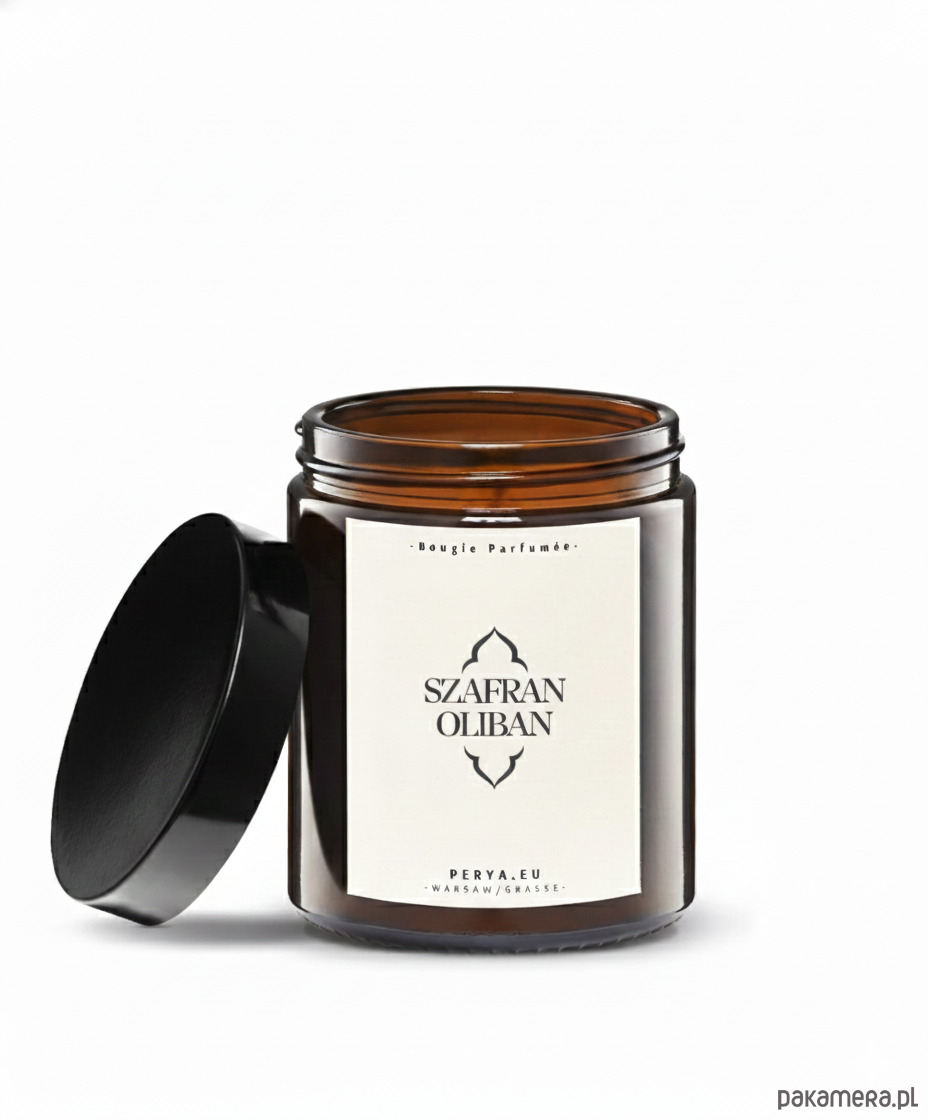 Świeca własnoręcznie zalana w pracowni na warszawskiej Woli woskiem roślinnym z dodatkiem najwyższej jakości olejków zapachowych z Grasse.