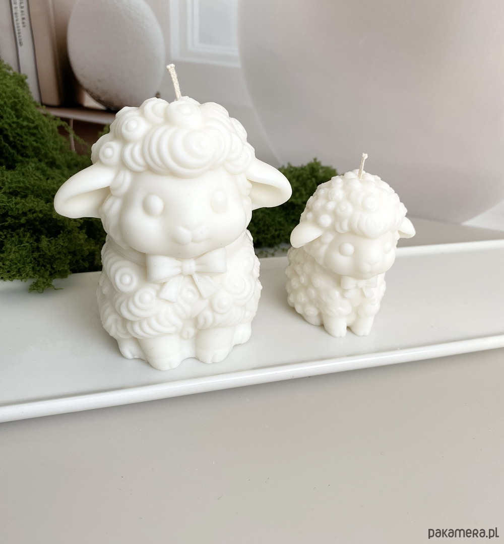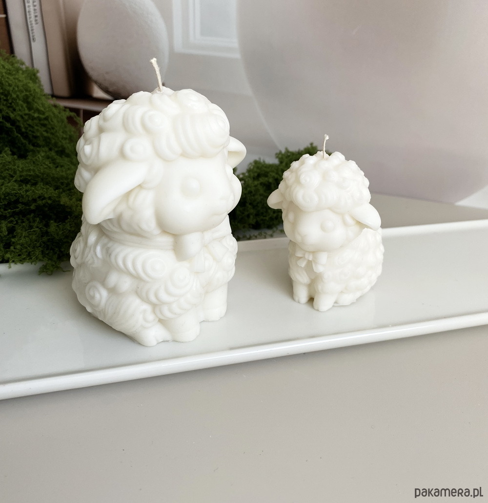 - wymiar świec: owieczka mała wys. 70mm, szer. 52mm; owieczka duża wys. 95mm, szer. 82mm