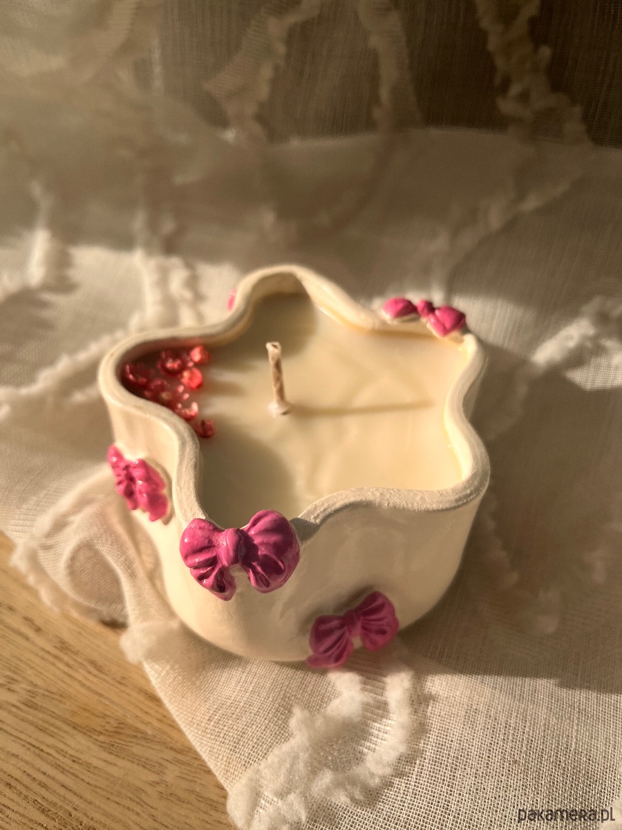 Opakowanie świeczki wykonane z gliny samoutwardzalnej, ręcznie malowane elementy.