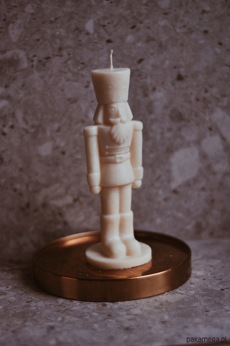Świeczka wolnostojąca w magicznym kształcie dziadka do orzechów! Świąteczna świeczka wykonana z wosku sojowego idealnie wpisze się w świąteczny klimat. Wykończona niebielonym knotem bawełnianym. Każda świeczka wykonywana jest ręcznie!