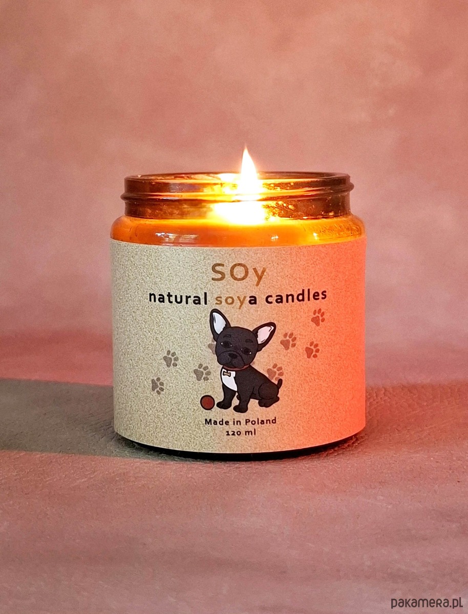 Świeczka sojowa z buldogiem francuskim , prezent dla psiarzy