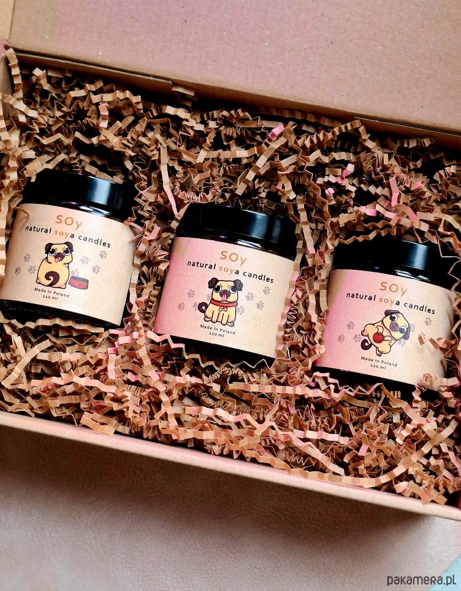 Świeca sojowa z mopsikiem to doskonały wybór dla wszystkich miłośników tej uroczej rasy. Ilustrowana etykieta z psem sprawia, że świeczka zachwyca nie tylko zapachem, ale i wyglądem. To idealna propozycja dla tych, którzy chcą dodać wnętrzu przytulności i charakteru.