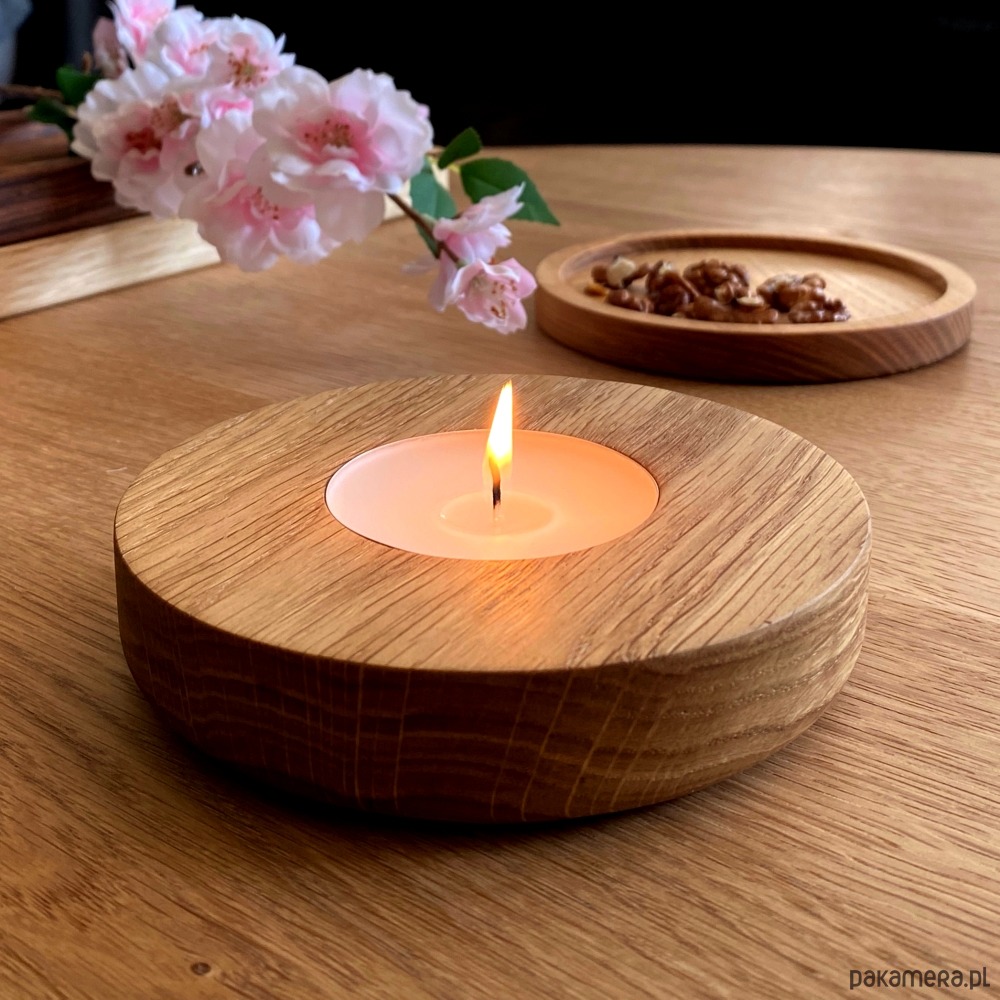 Minimalistyczny Świecznik dębowy na duży tealight