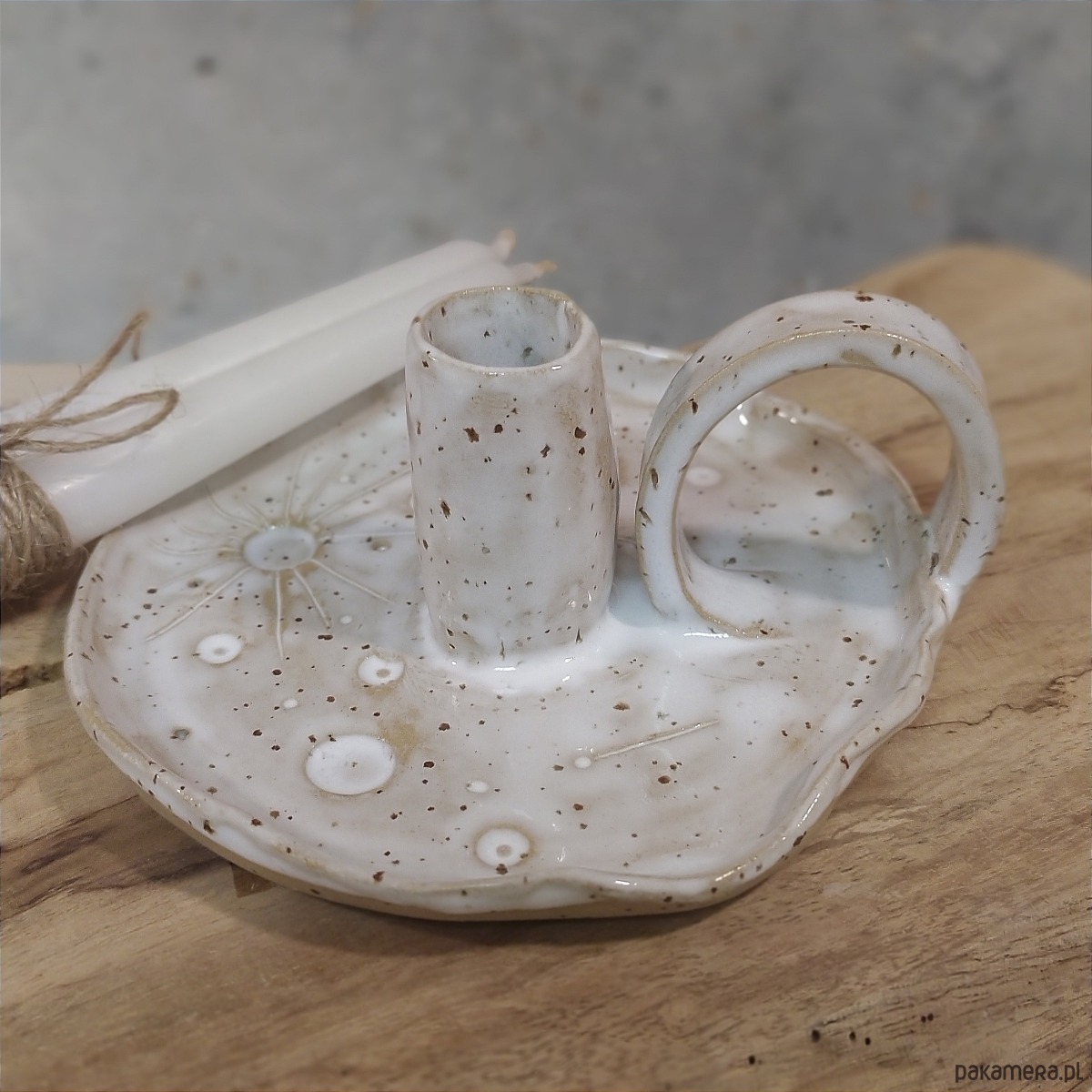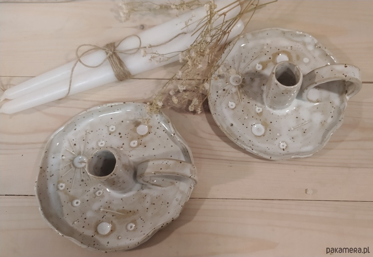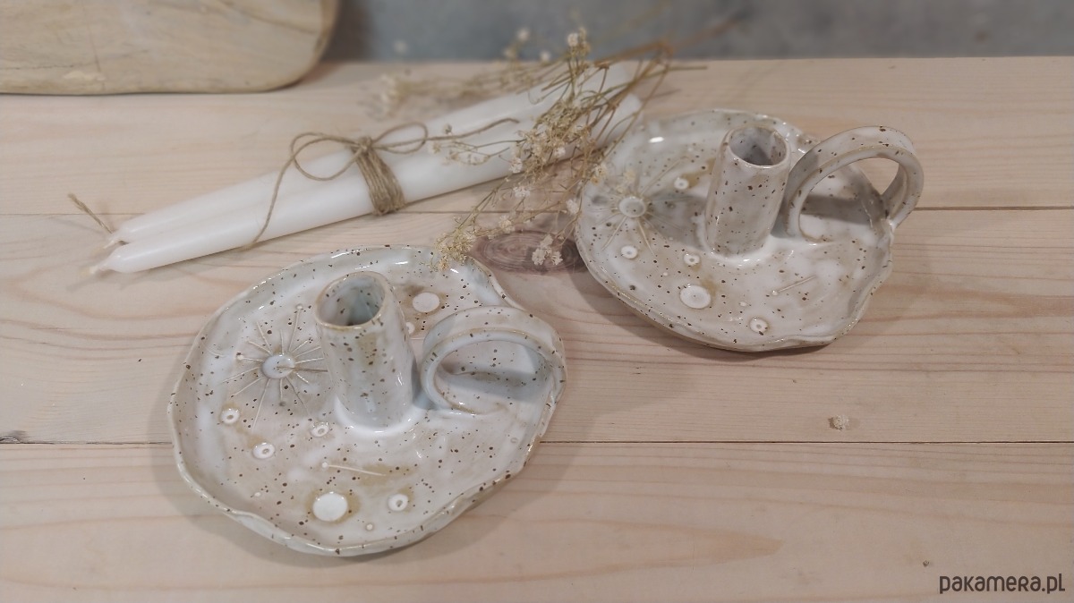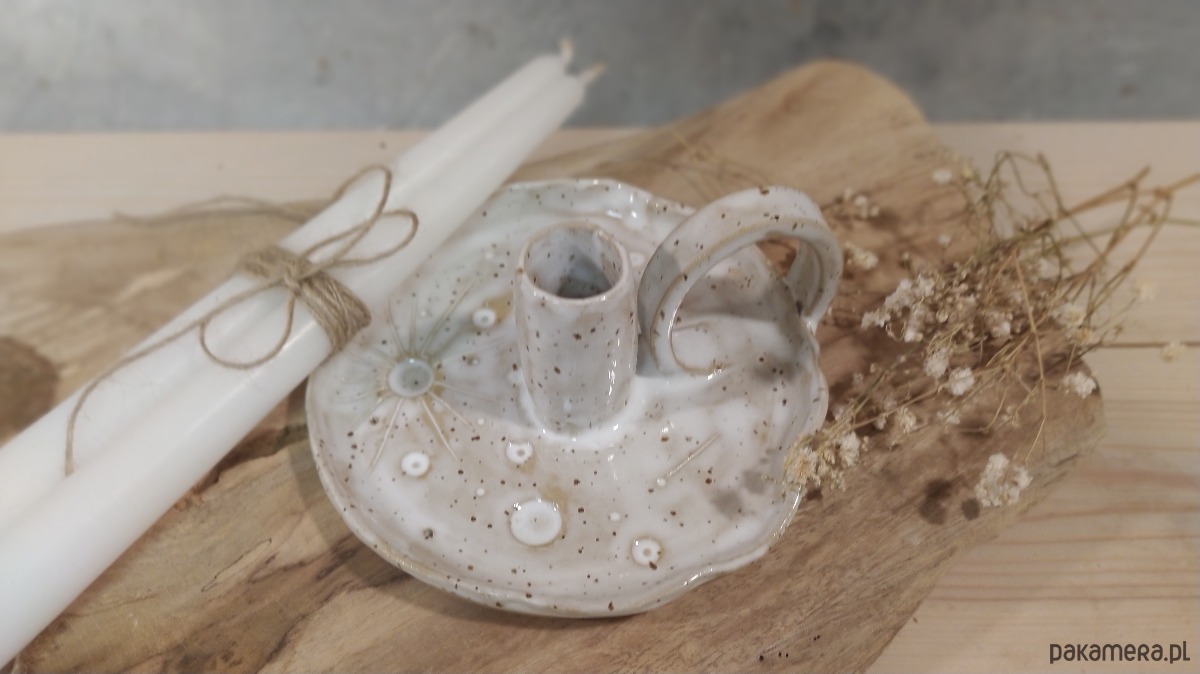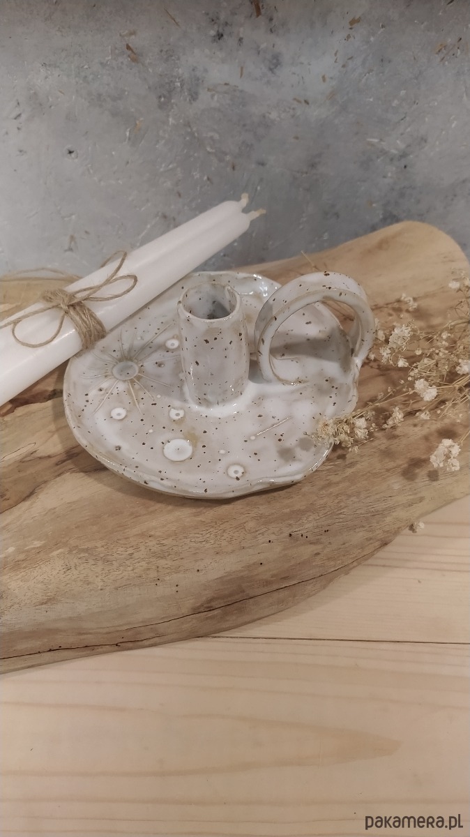 Świecznik kaganek ceramiczny, księżyc w pełni , hand made