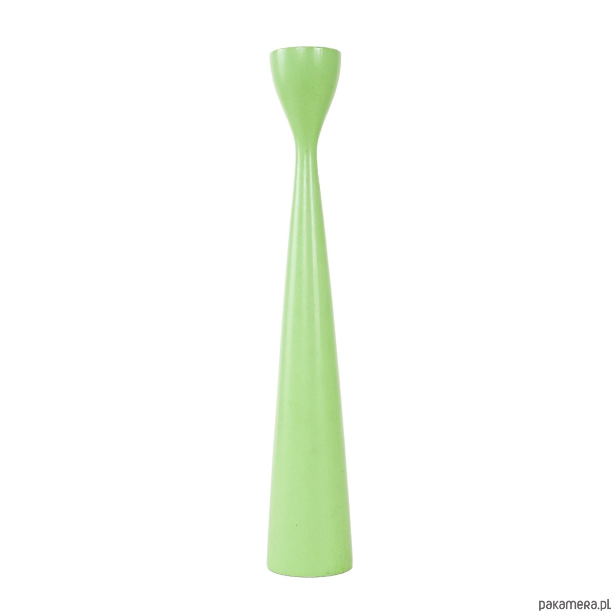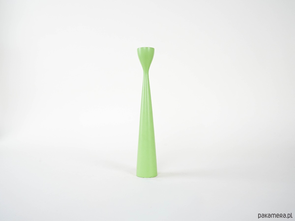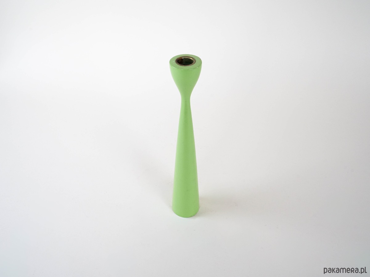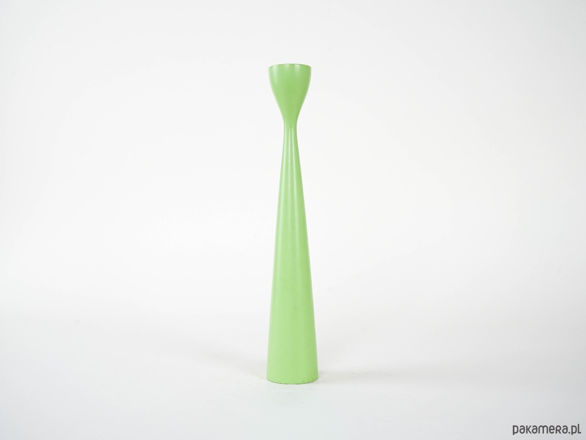 Smukły świecznik z lat 60.–70. XX wieku, wykonany z drewna i wykończony w intensywnie zielonym odcieniu. Minimalistyczna, elegancka forma w stylu skandynawskim sprawia, że świetnie odnajdzie się zarówno w nowoczesnych, jak i retro wnętrzach. Może być pięknym akcentem solo lub częścią większej kolekcji kolorowych świeczników.