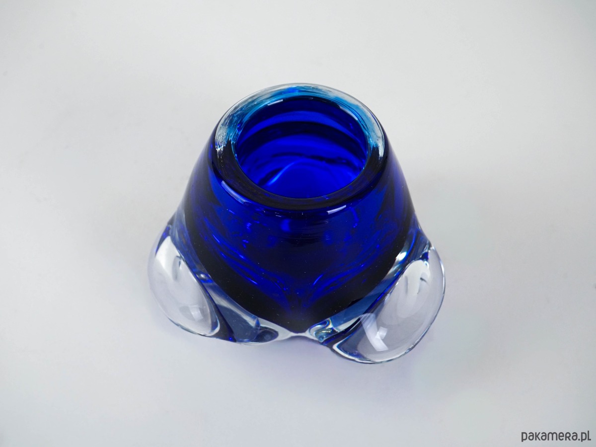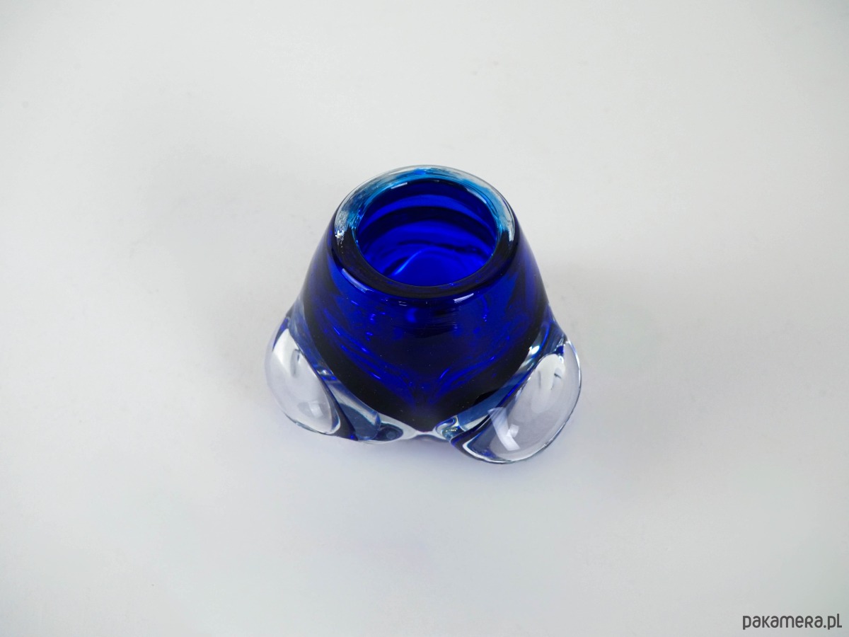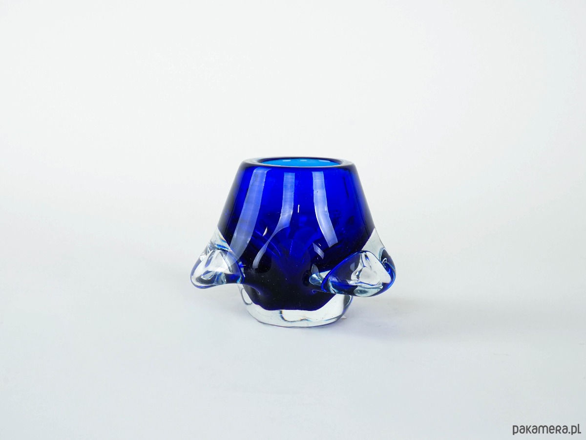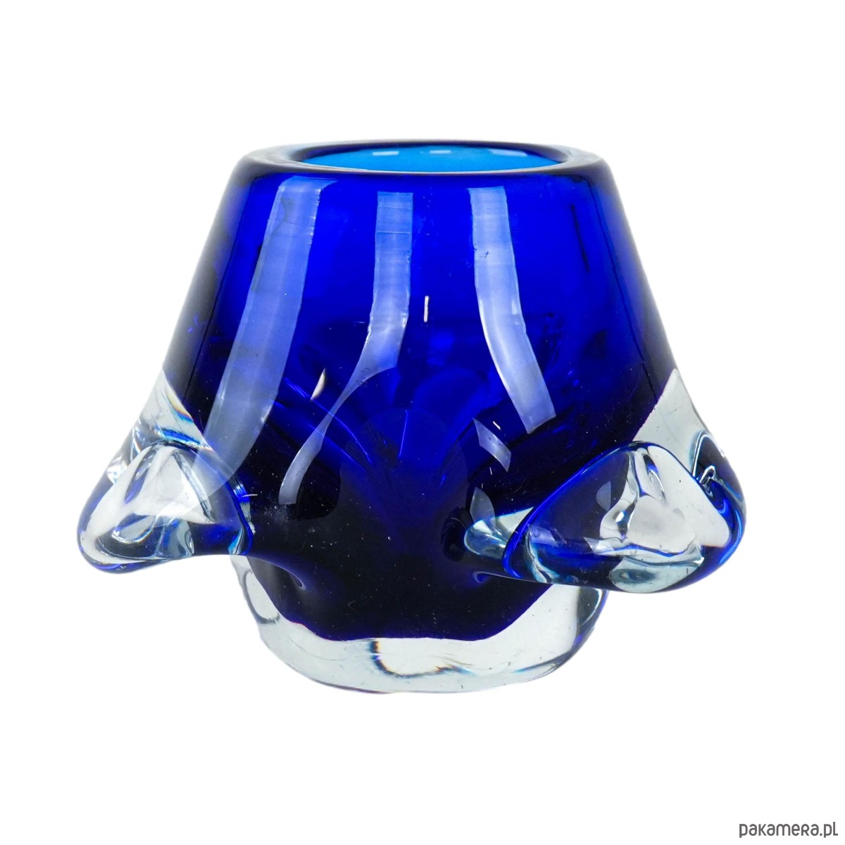 Świecznik szklany kobaltowy, włoski design, lata 60, produkcja: Włochy