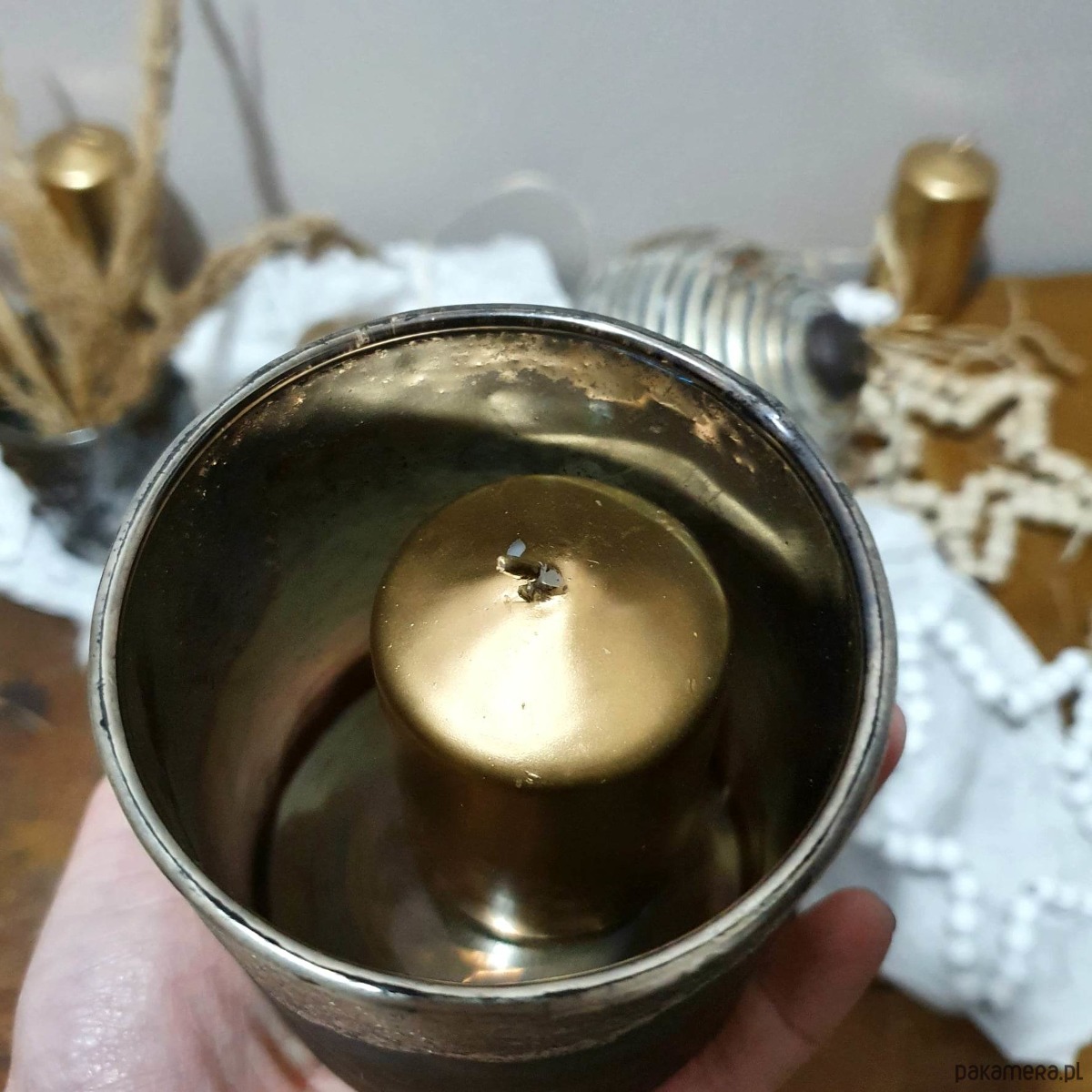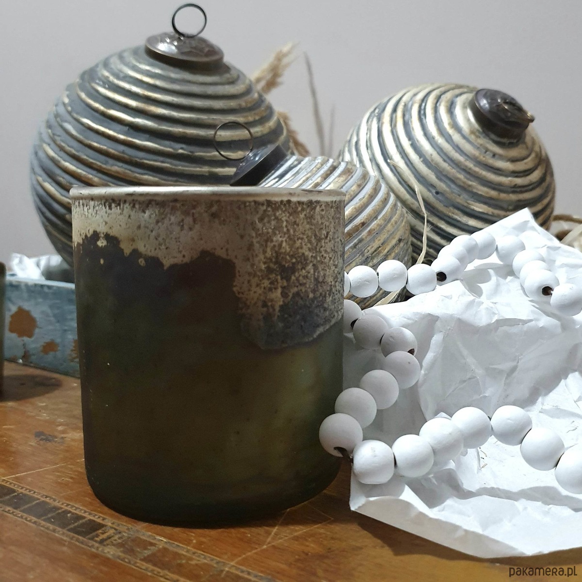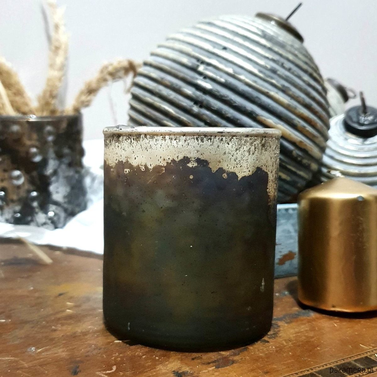 Szklany świecznik w stylu vintage. Oksydowane szkło sprawia, że każdy egzemplarz jest inny i niepowtarzalny.