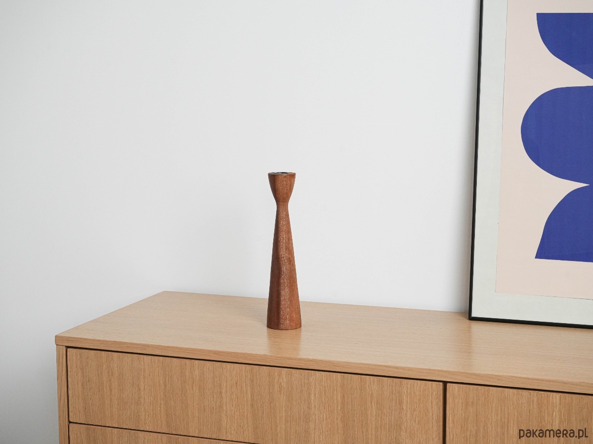 Elegancki świecznik z litego drewna tekowego, o charakterystycznej, smukłej sylwetce typowej dla duńskiego designu lat 60. Naturalne usłojenie drewna nadaje mu unikatowego charakteru, a minimalistyczna forma sprawia, że pasuje do każdego wnętrza.
