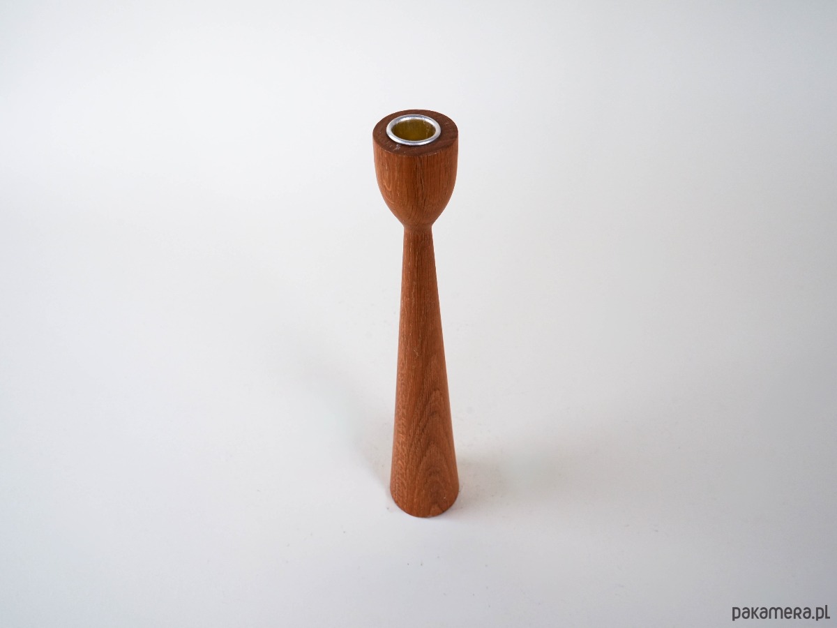 Świecznik tekowy, duński design, lata 70, produkcja: Dania