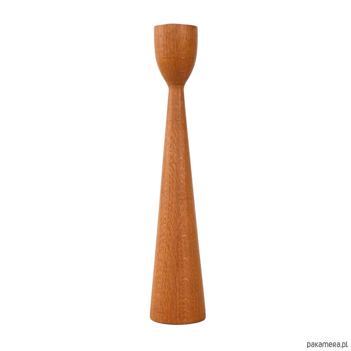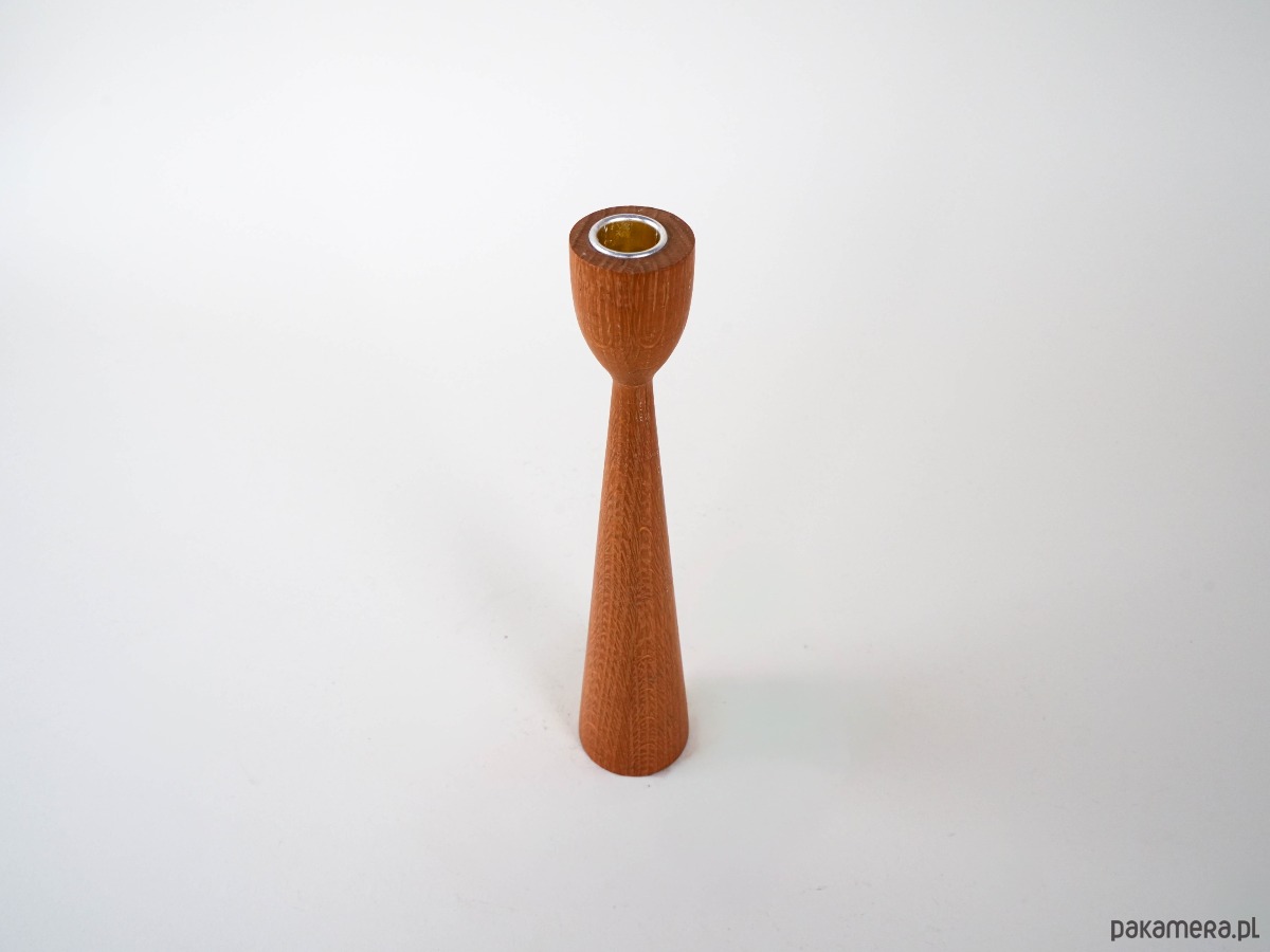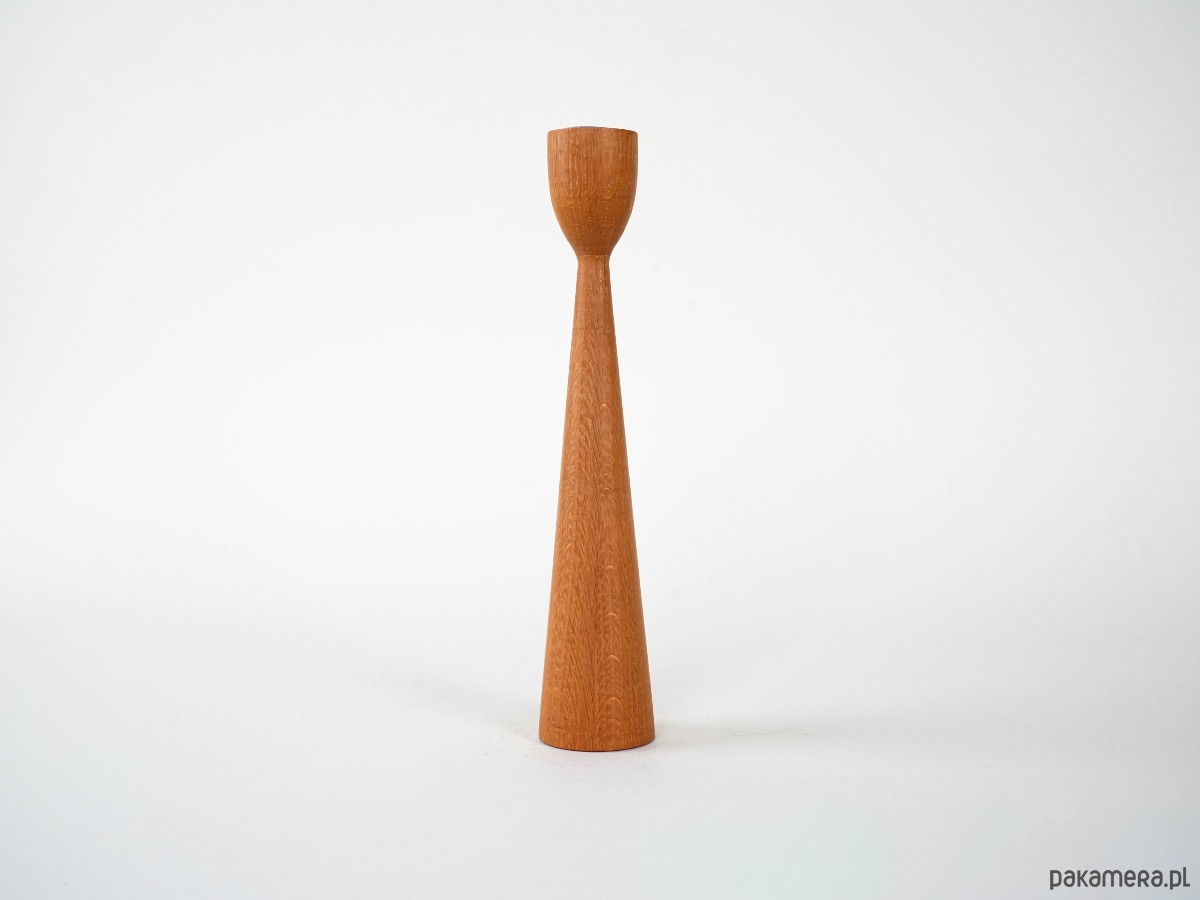 Prosty, smukły świecznik wykonany z drewna tekowego. Minimalistyczna forma typowa dla skandynawskiego designu lat 60. i 70. sprawia, że świetnie prezentuje się zarówno solo, jak i w zestawie z innymi świecznikami różnej wysokości.