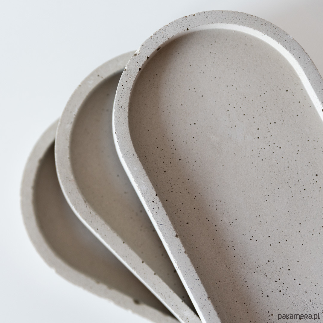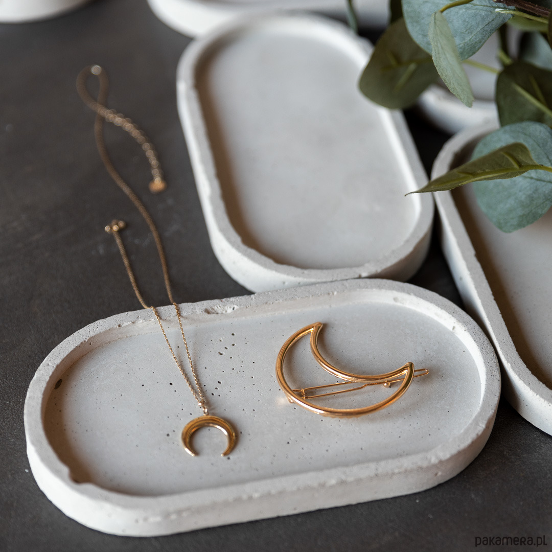 Nowoczesna o owalnym kształcie betonowa podkłada idealna na biżuterię, świeczki, klucze, także może służyć jako organizer na biurko lub jako podkładka na monety i drobiazgi. Każda podkładka jest niepowtarzalne i unikatowa