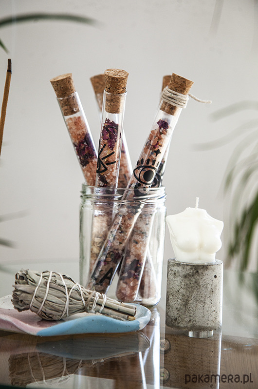 Ręcznie robione przez nas fiolki z solą do kąpieli. Wypełnione po brzegi mieszanką soli Himalajskiej oraz magnezowej Eposom. O pięknym relaksacyjnym zapachu i cieszącym oko płatkom kwiatów.