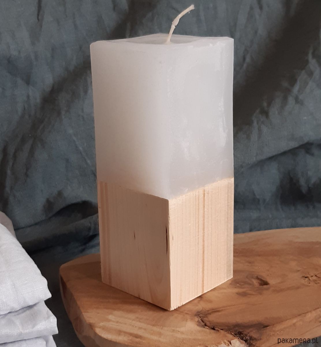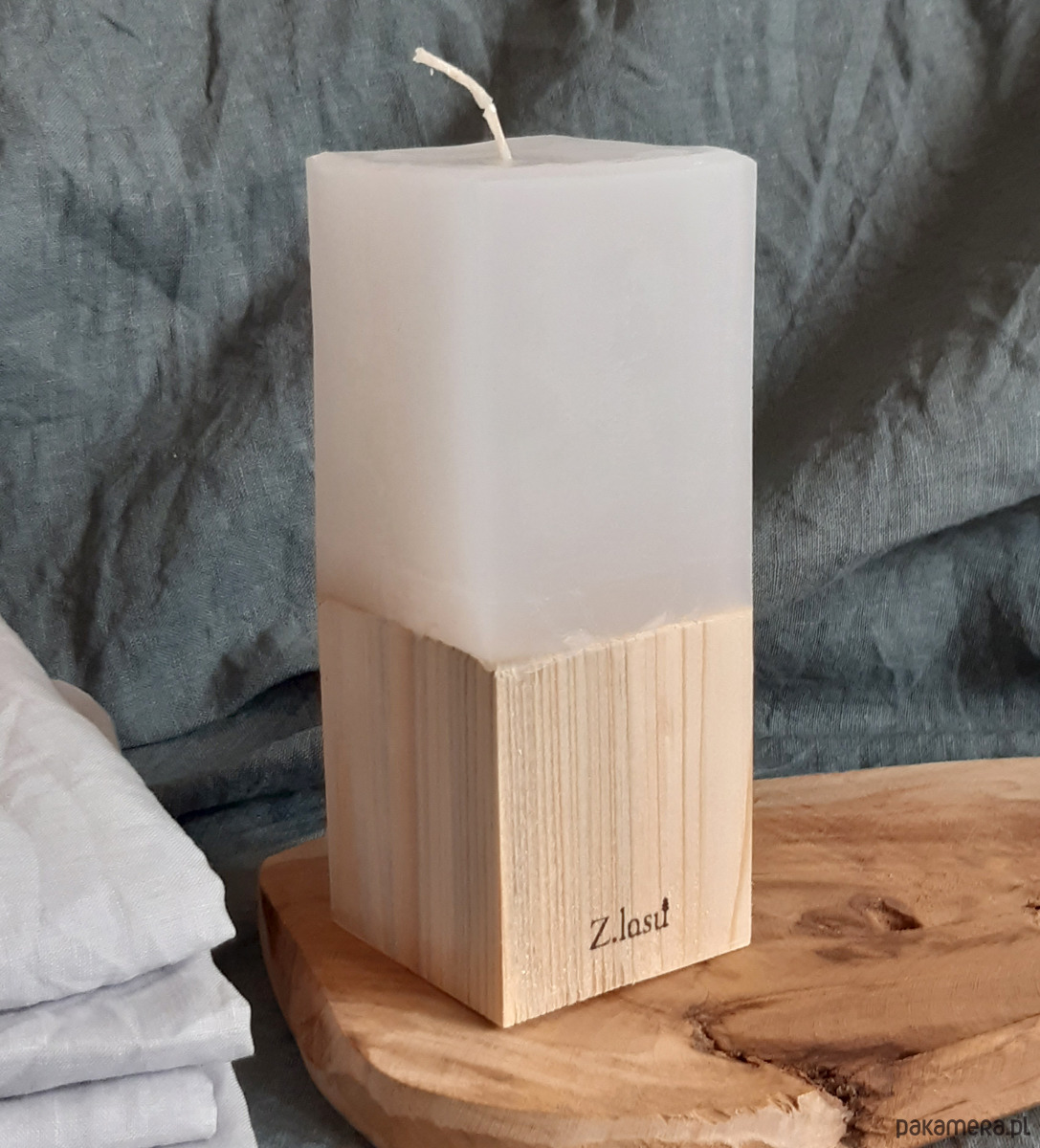 Świeca dekoracyjna na drewnie sosnowym