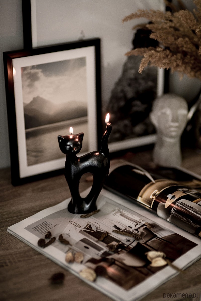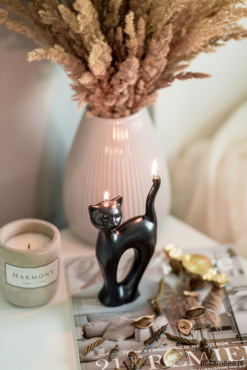 Smukły kształt kota dodaje delikatności i stylu, tworząc niepowtarzalny element dekoracyjny, który przyciąga spojrzenia. 🕯️✨