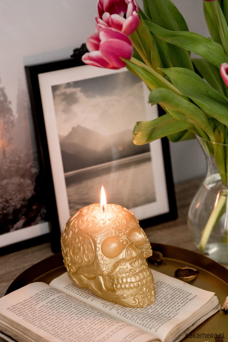 Dodaj nutkę mistycyzmu do swojego domu i ciesz się niezwykłą atmosferą meksykańskiego Dnia Zmarłych z naszą świeczką w kształcie czaszki.