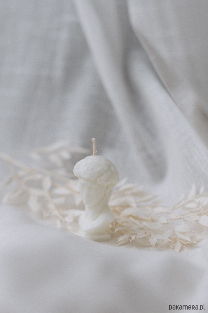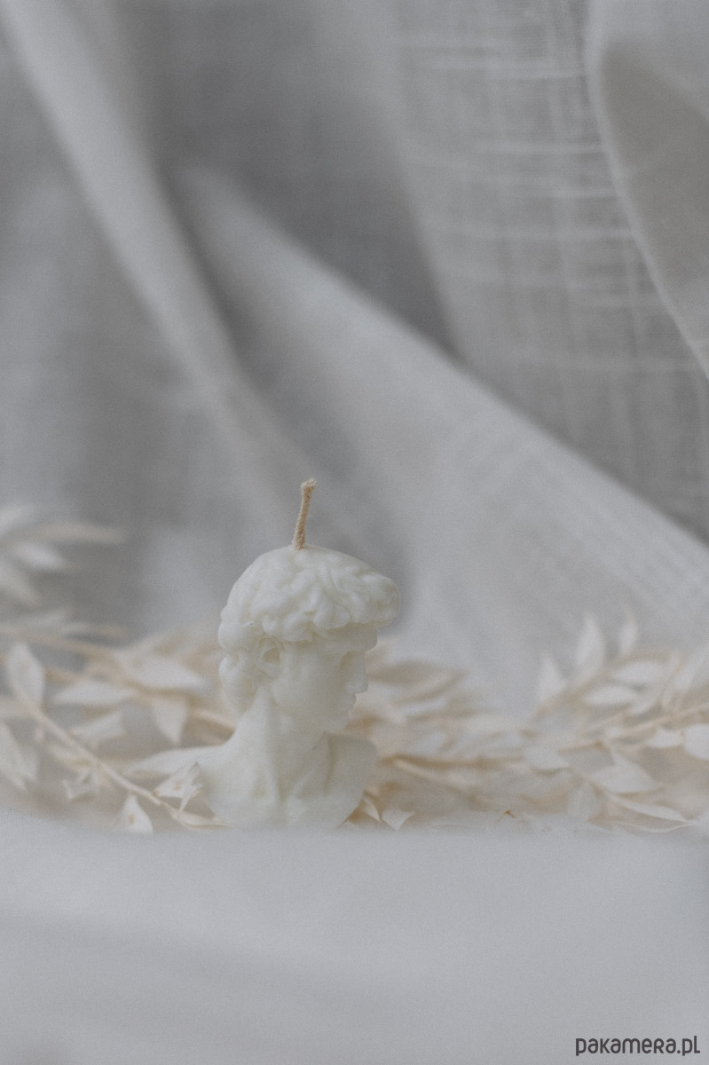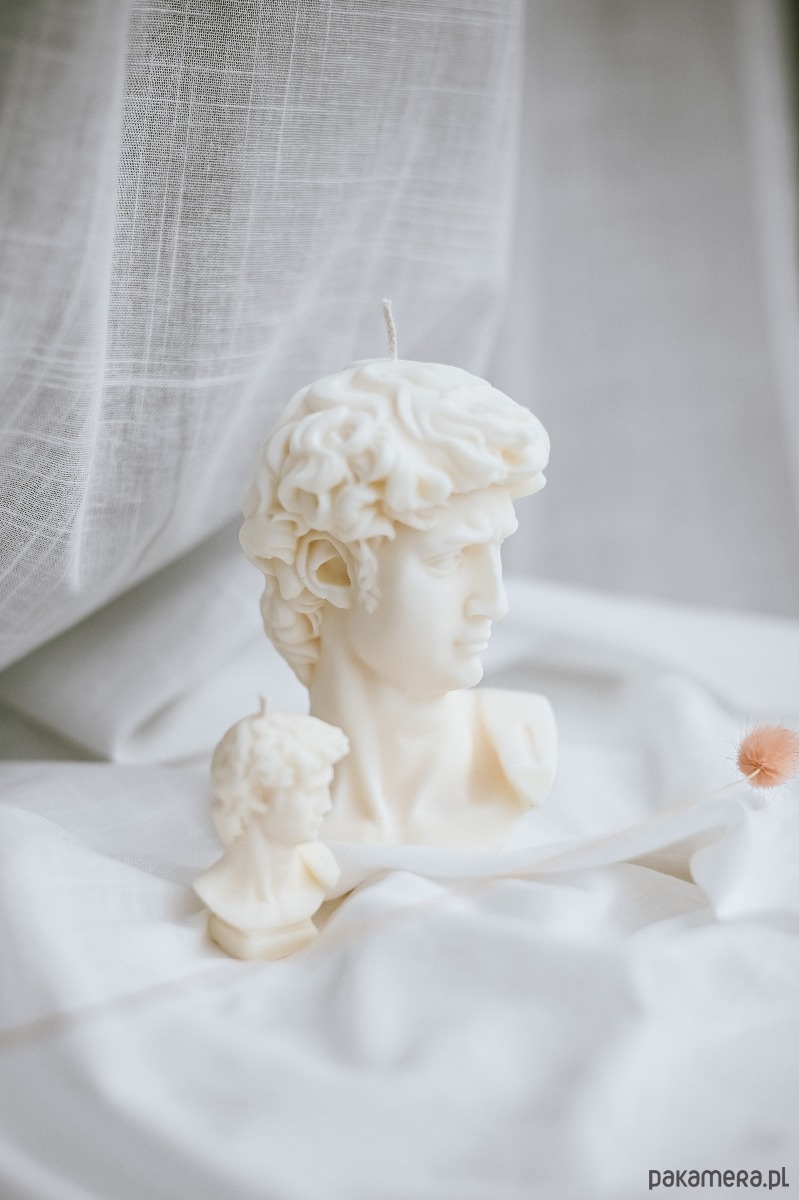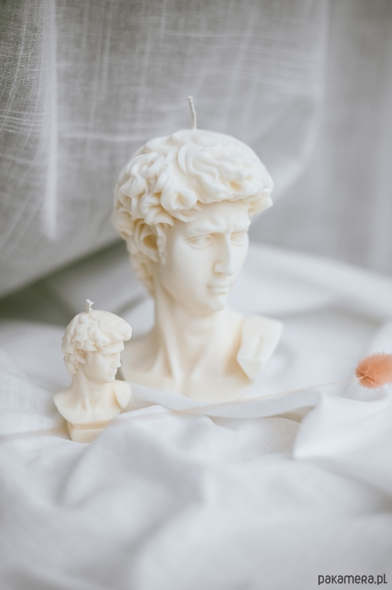 Świeca sojowa DAWID: piękna figura głowy Dawida wykonana z wosku sojowego.