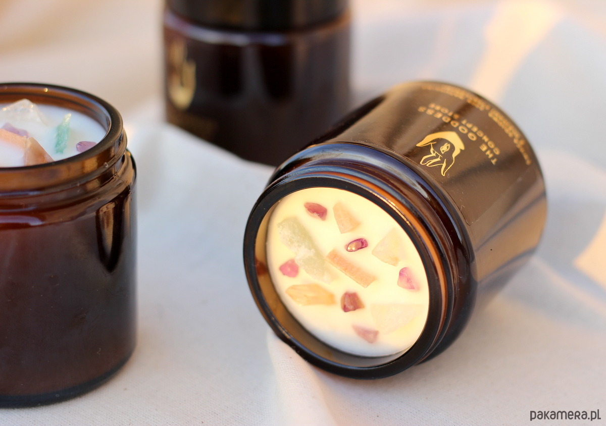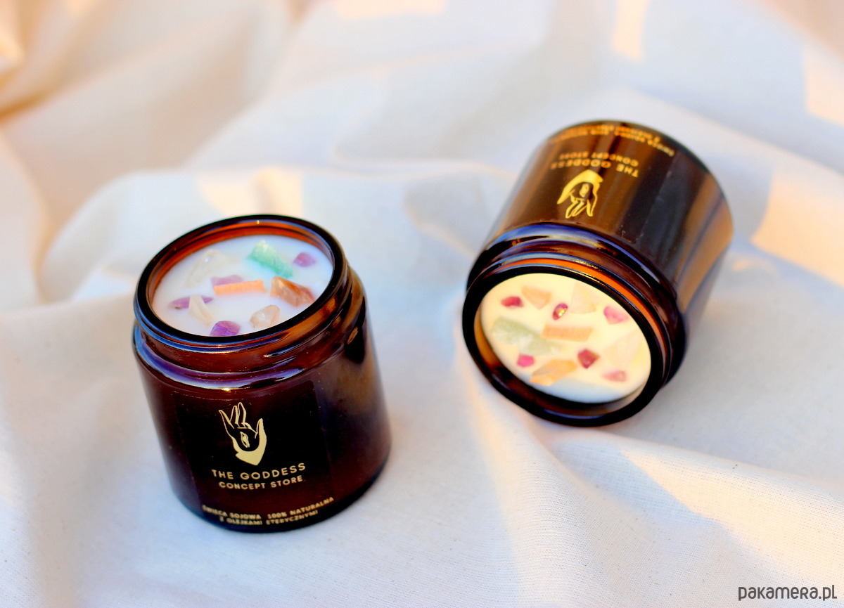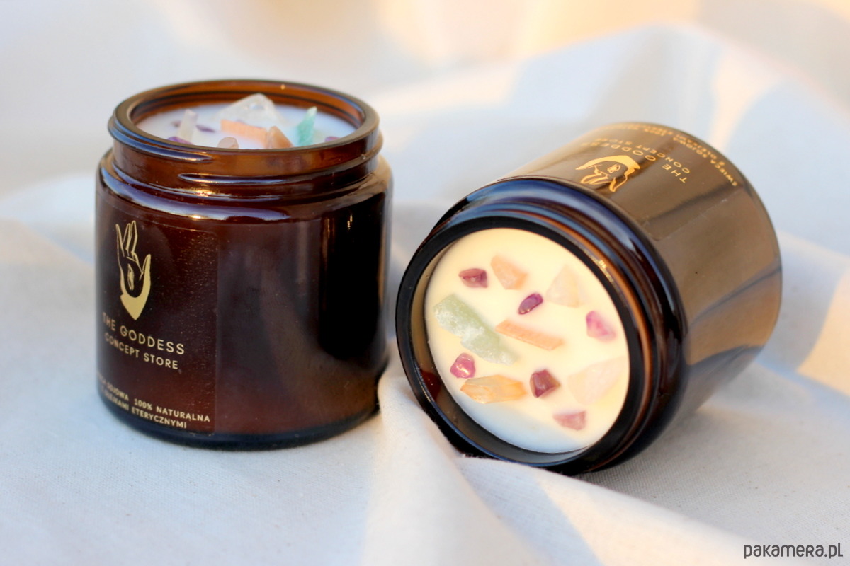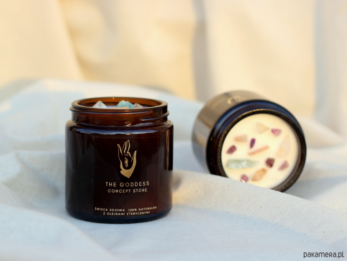 Świeca sojowa na DOBROSTAN z kamieniami szlachetnymi:
