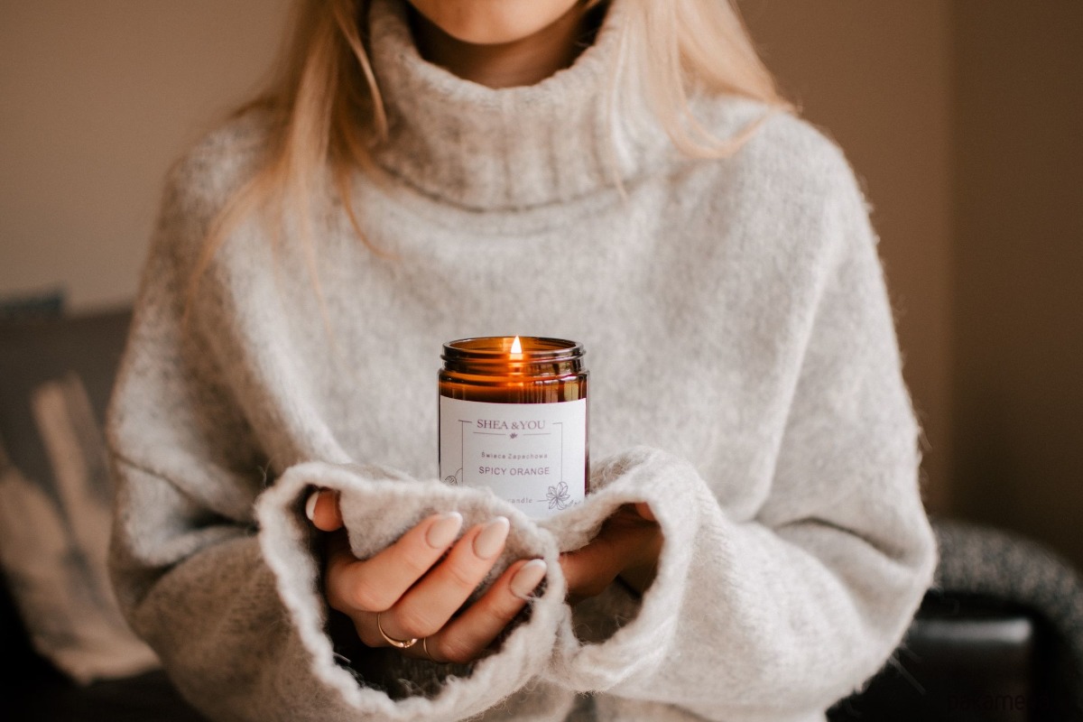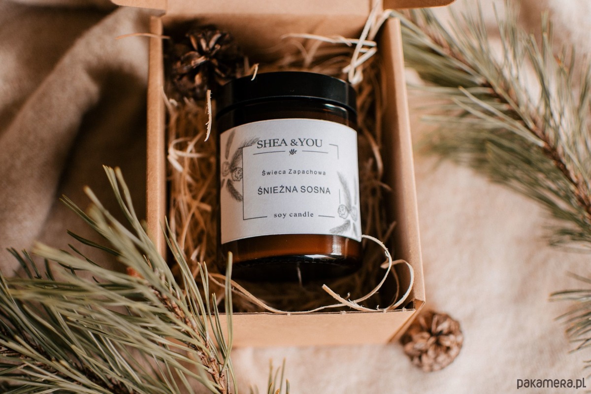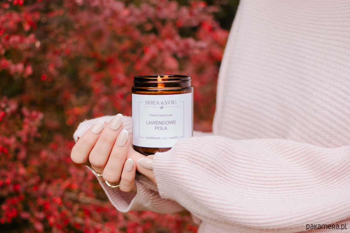 Świeczki zapachowe Shea&You składają się ze 100% wosku sojowego oraz kompozycji zapachowej z olejków zapachowych zamkniętych w ciemnym, szklanym słoiczku z nakrętką o pojemności 180 ml.