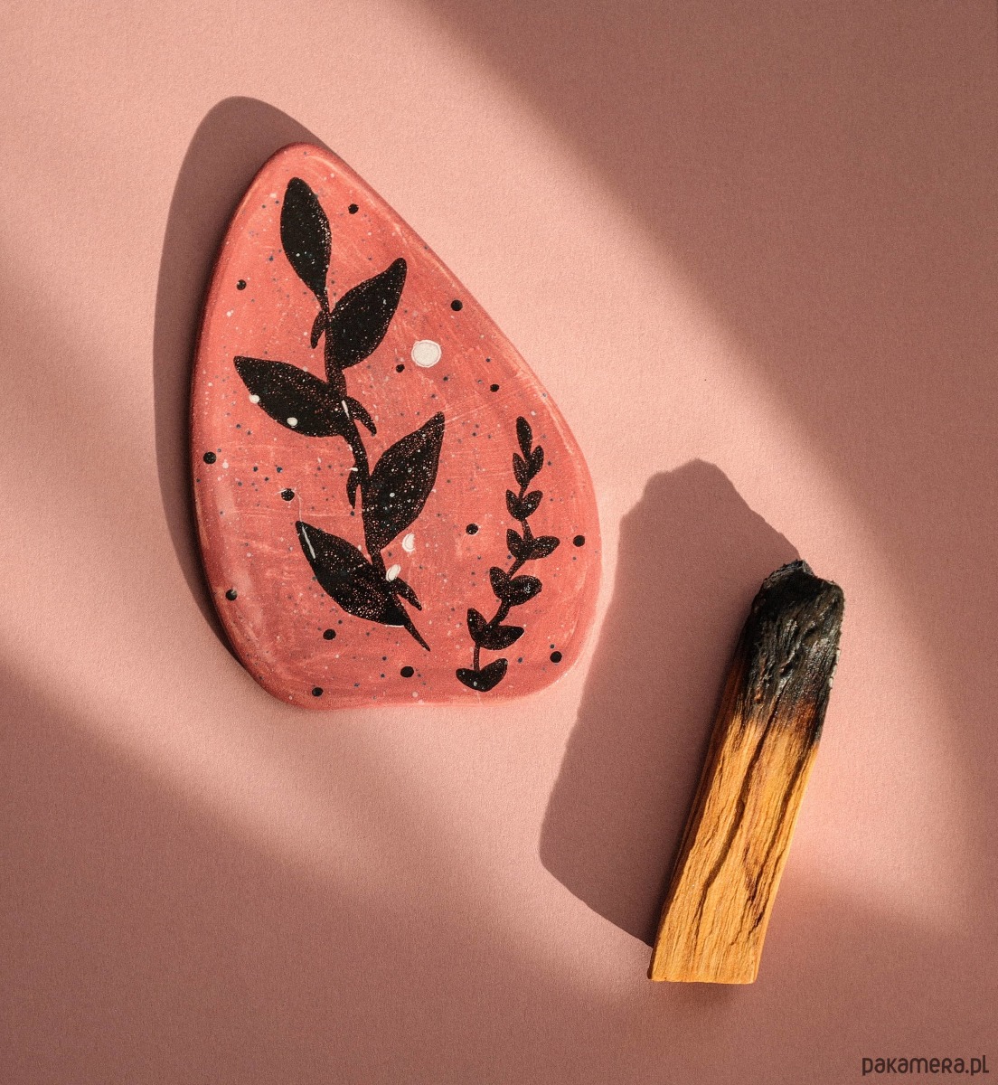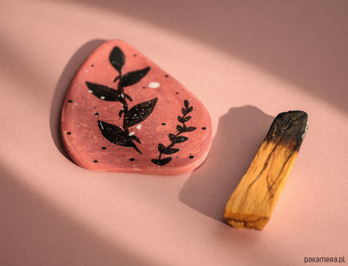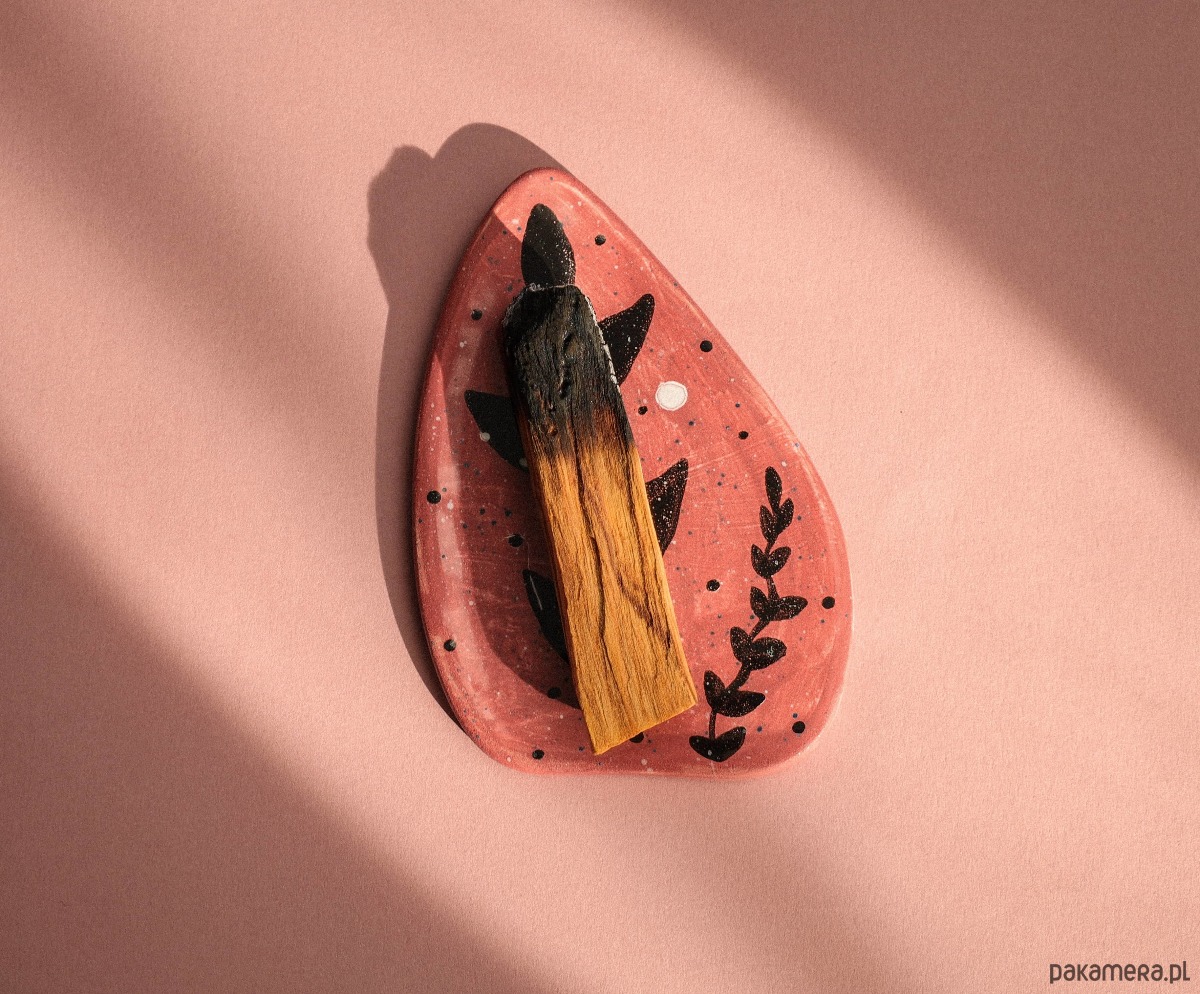 Ceramiczny talerzyk w kształcie serca zrobiony został ręcznie bez użycia koła garncarskiego oraz form. Jest to produkt unikalny. Wzór jest odporny na ścieranie oraz na oddziaływanie wysokiej temperatury podczas palenia kadzidła. Wszystkie materiały użyte do produkcji są nietoksyczne. Talerzyk sprawdzi się także z innymi rodzajami kadzideł, na przykład: suszona szałwia oraz kadzidła stożkowe (płynące).