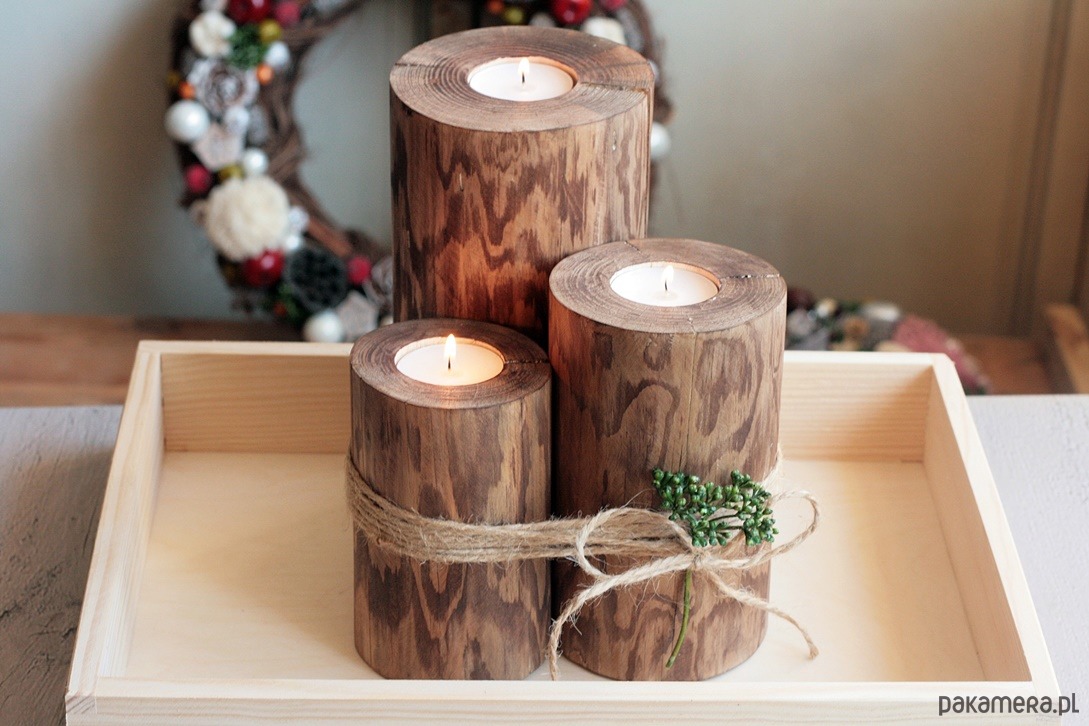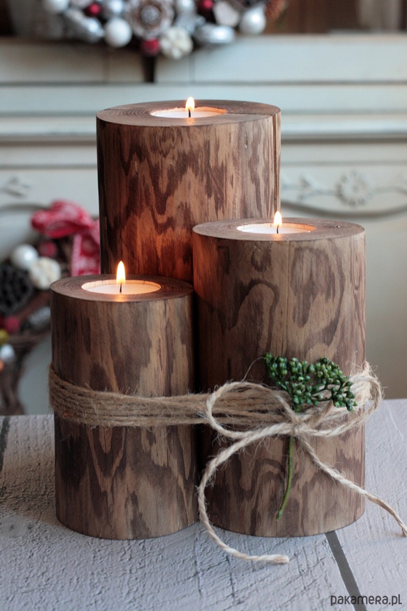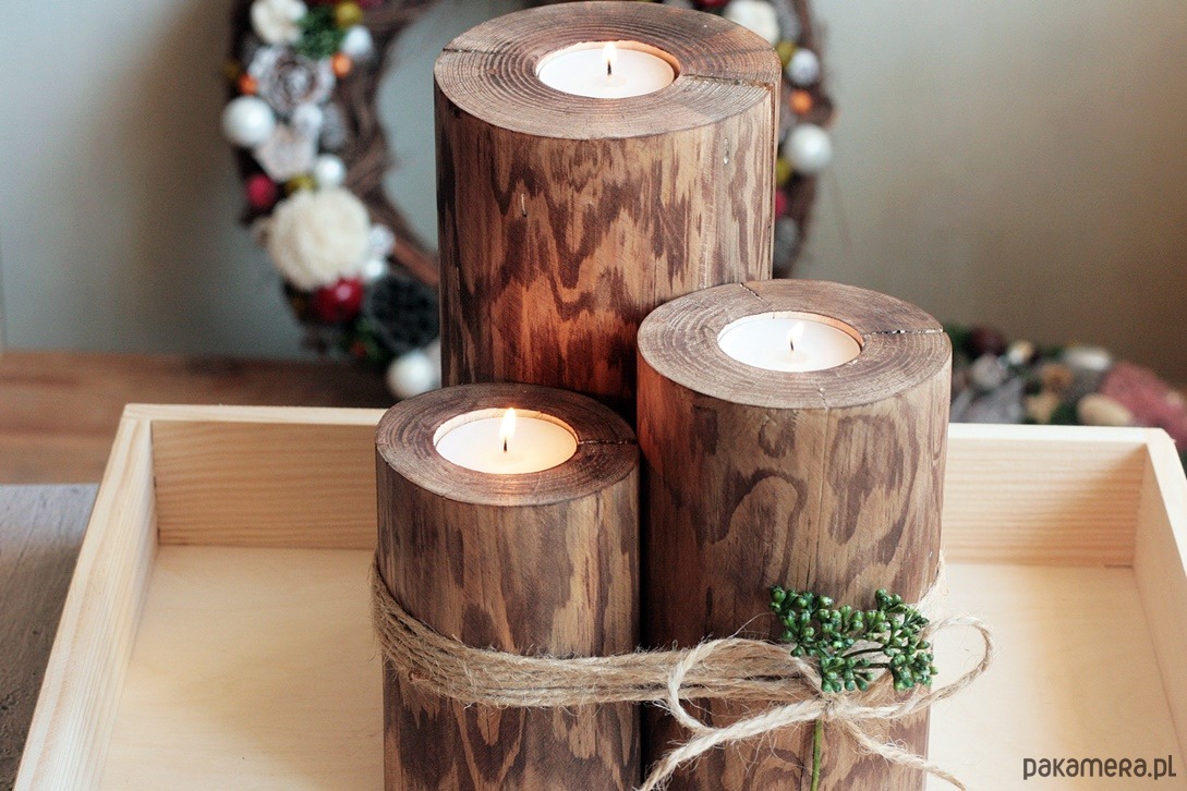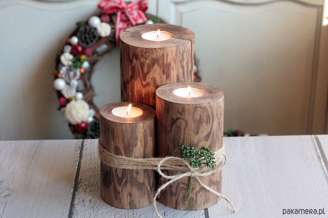W tej ofercie rustykalne drewniane świeczniki w opcji rustykalnego drewna.