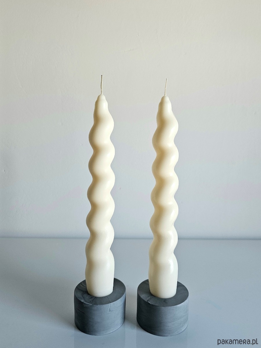 Świeczniki okrągłe dzięki swojej minimalistycznej formie pasują do niemal każdego rodzaju świec stożkowych.