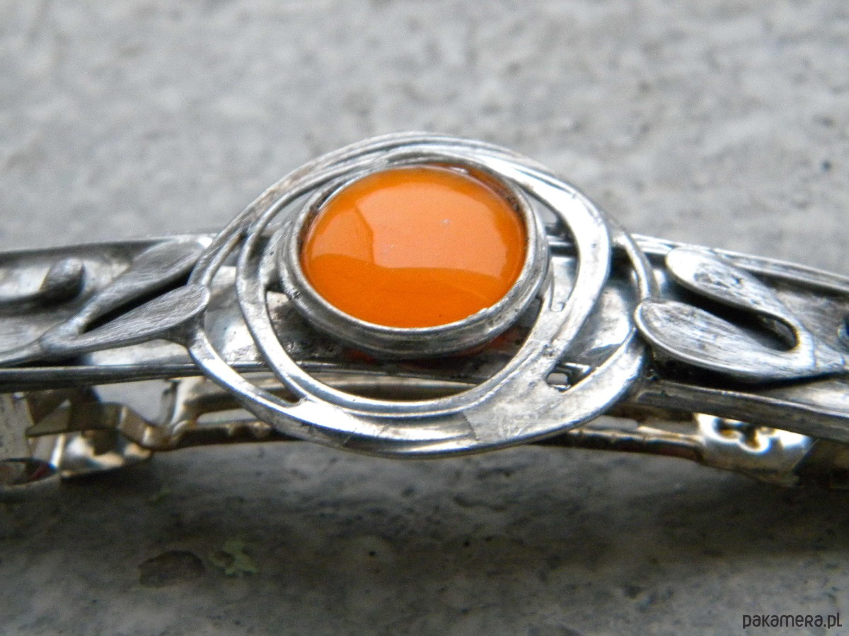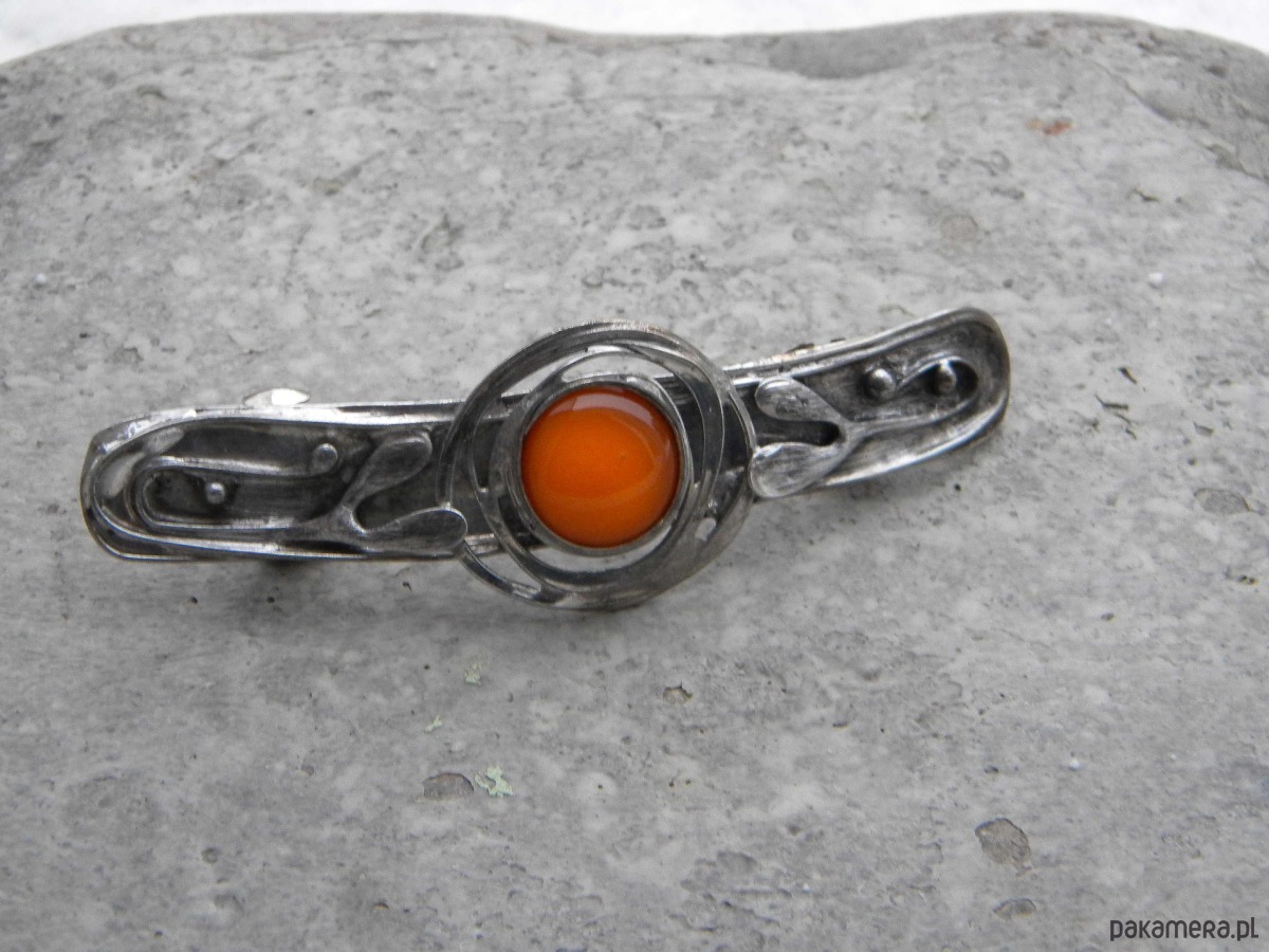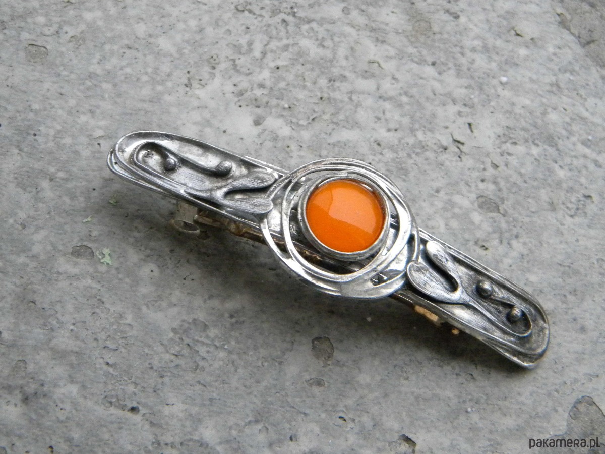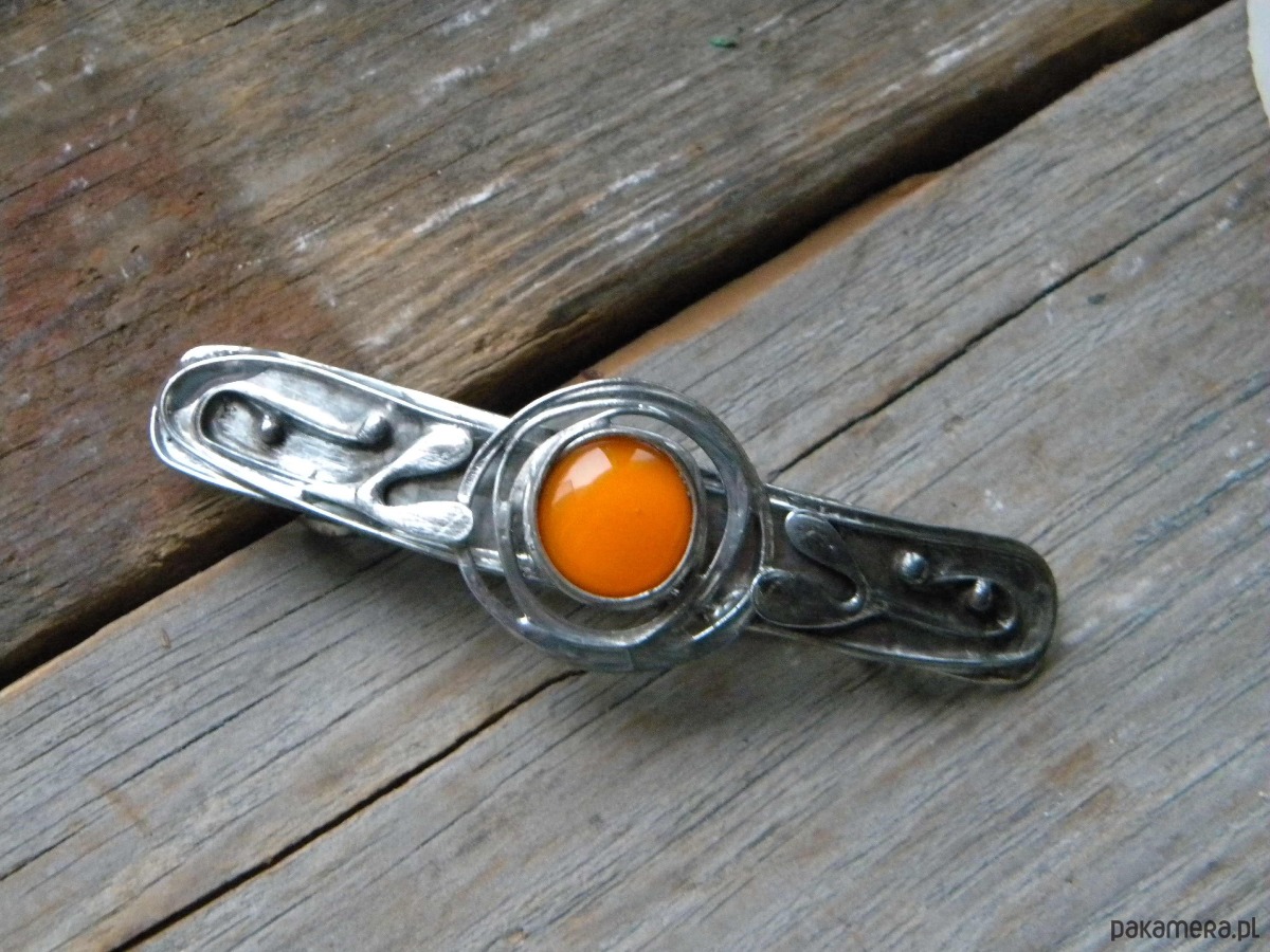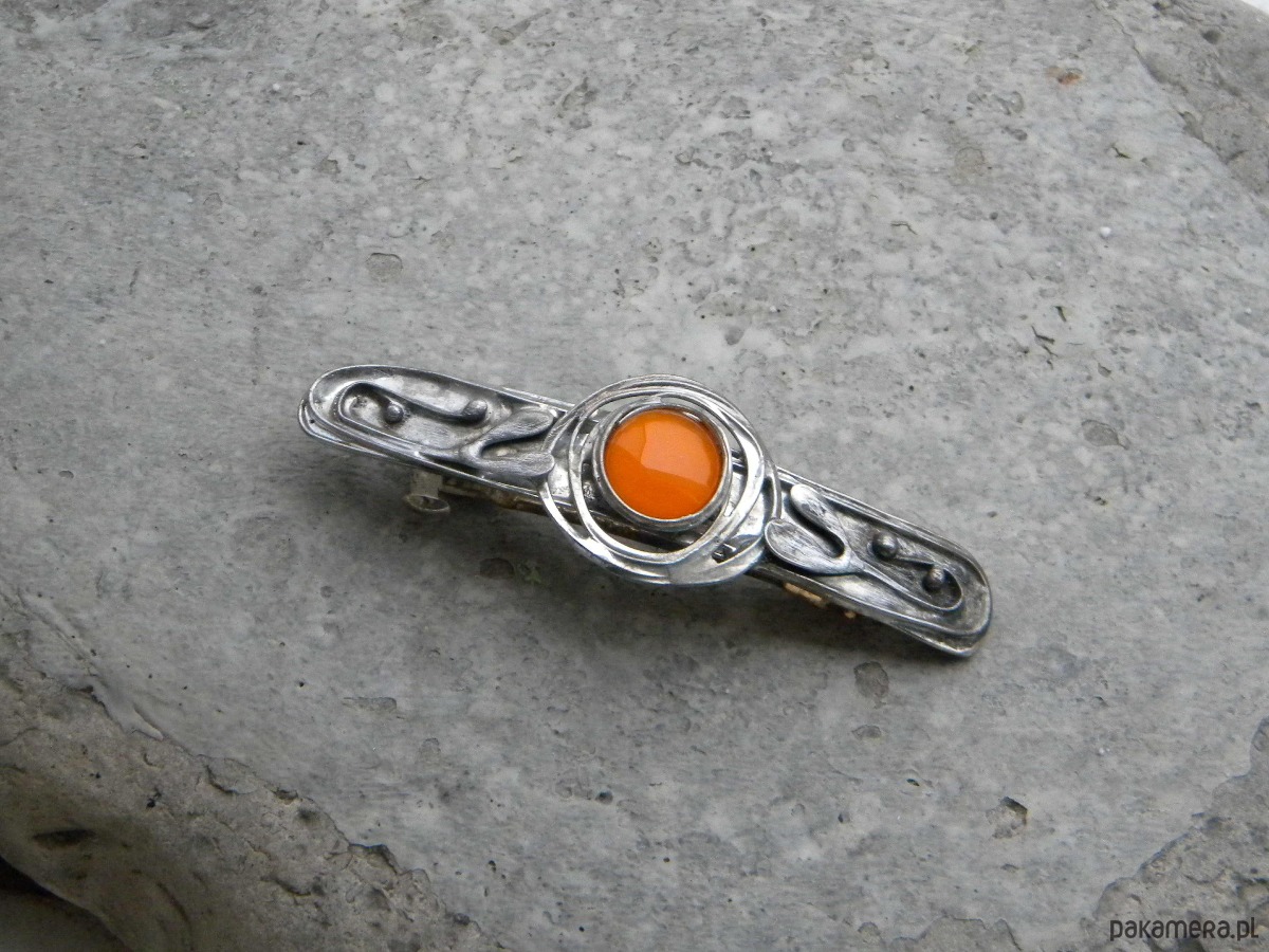 klamra do włosów ze szkła oprawionego w ocynowaną miedz.