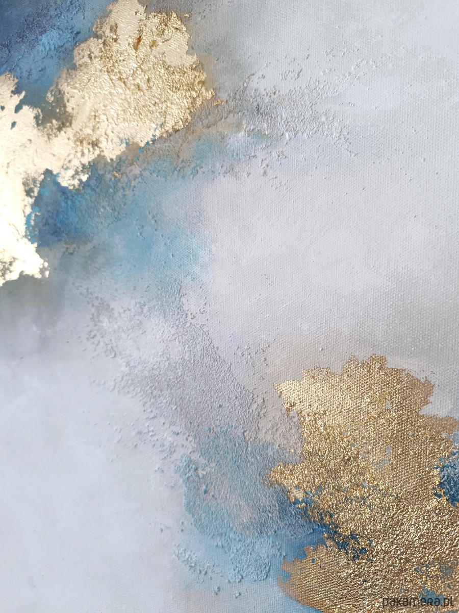 ŚWIETLISTY HORYZONT - obraz abstrakcyjny z fakturą i złoceniami 100x70 cm