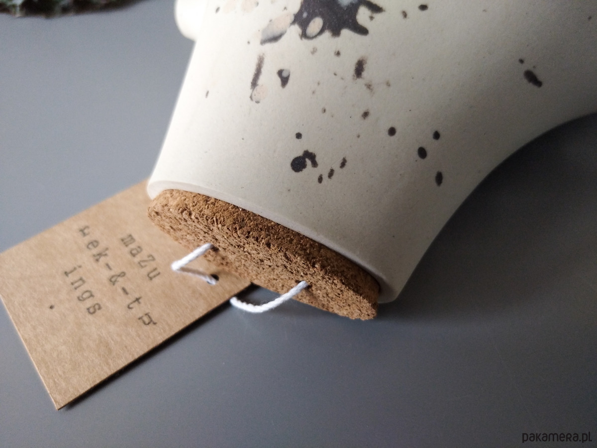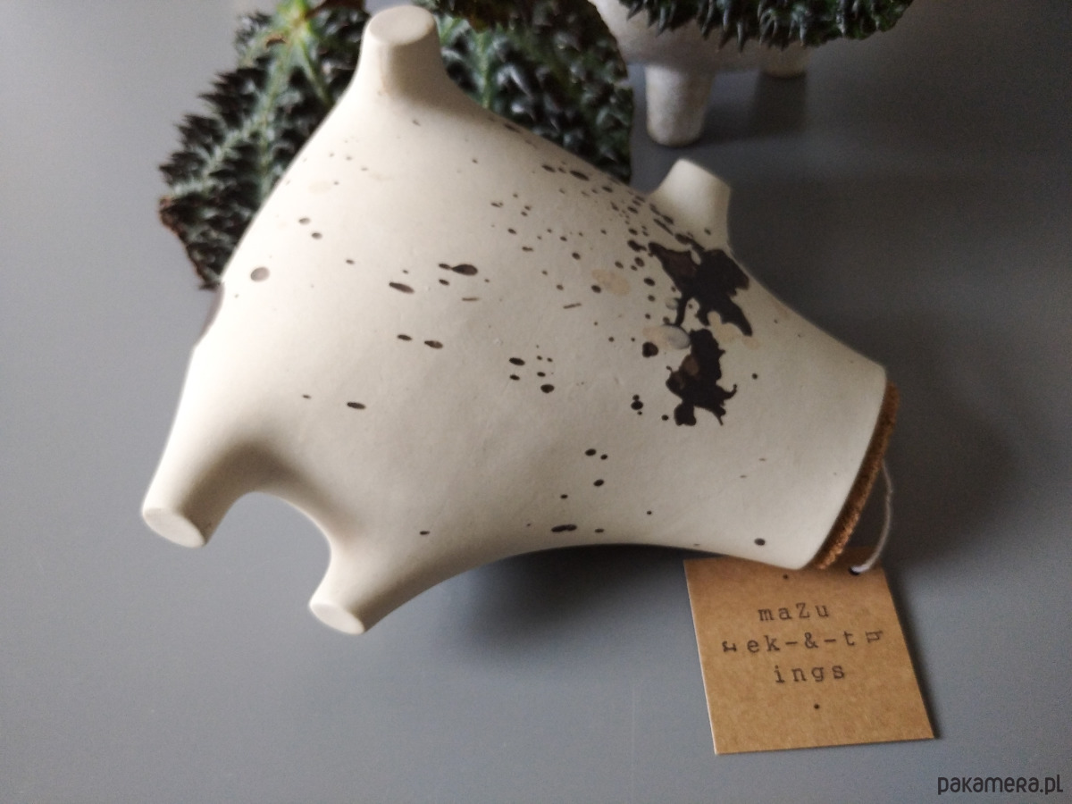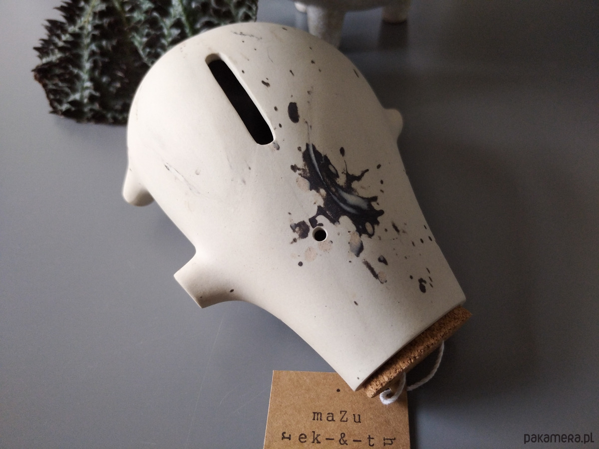 Świnka została wykonana ręcznie z nieszkliwionej kamionki oraz naturalnego korka.