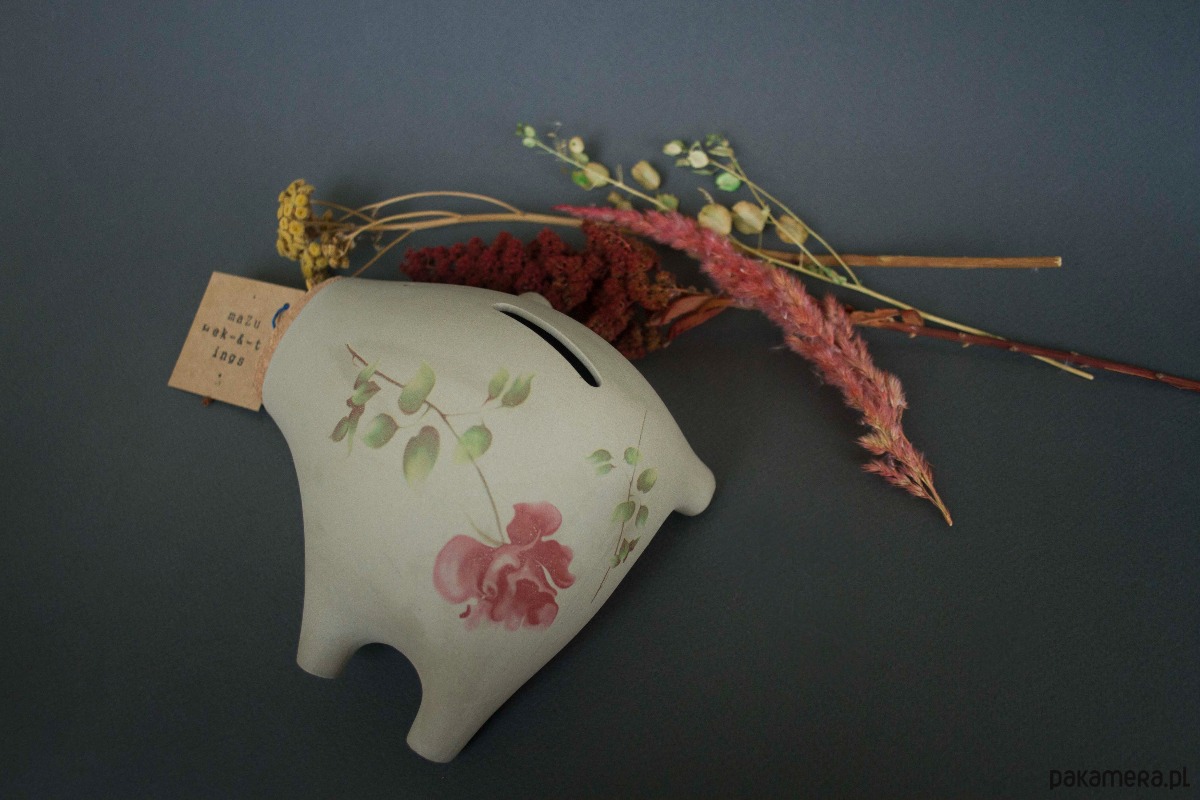 Ornament kwiatowy to kalka ceramiczna, wypalona w piecu ceramicznym razem ze świnką (w sensie trwała). Jeśli ten wzór coś Wam przypomina, to kierujcie wspomnienia w stronę polskiej porcelany