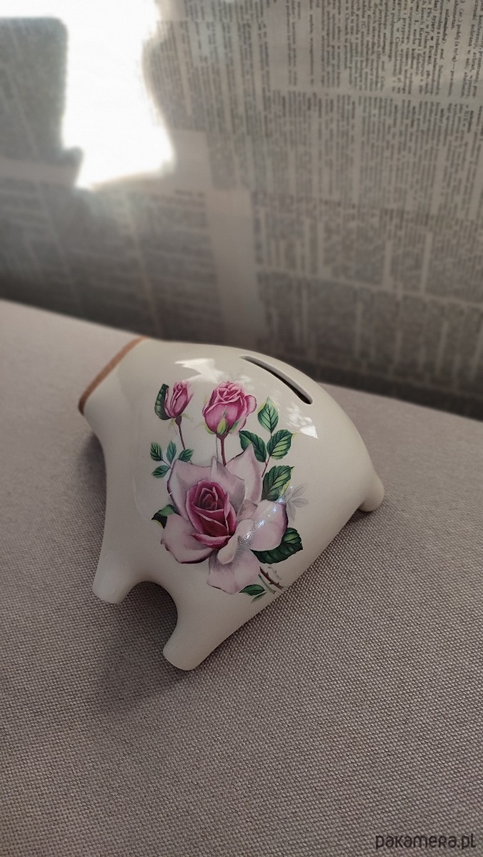 Ornament kwiatowy to kalka ceramiczna, wypalona w piecu ceramicznym razem ze świnką (w sensie trwała). Jeśli ten wzór coś Wam przypomina, to kierujcie wspomnienia w stronę polskiej porcelany ❤️